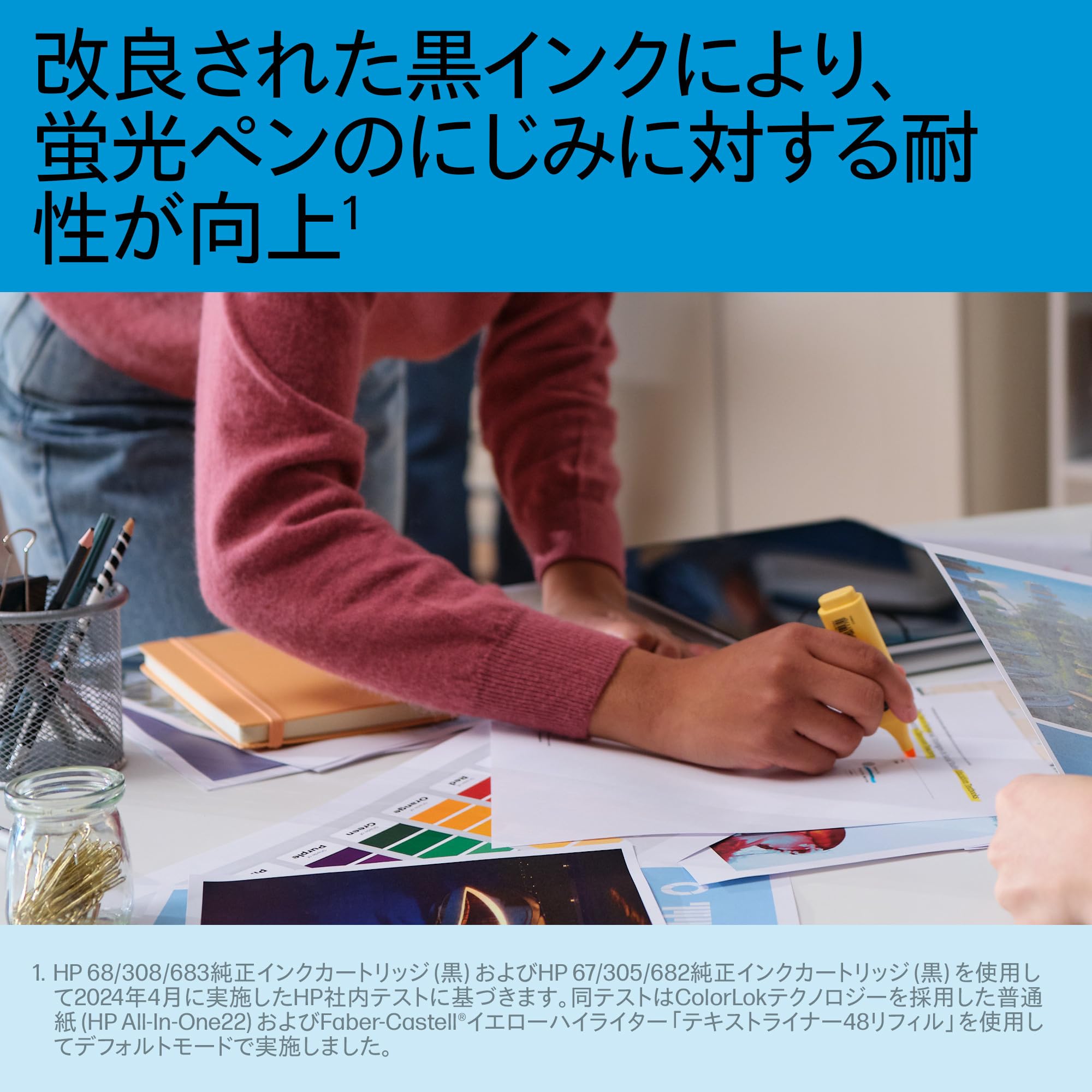最新技術を採用したHP純正インクだから、文字はシャープに、写真は色鮮やかに。