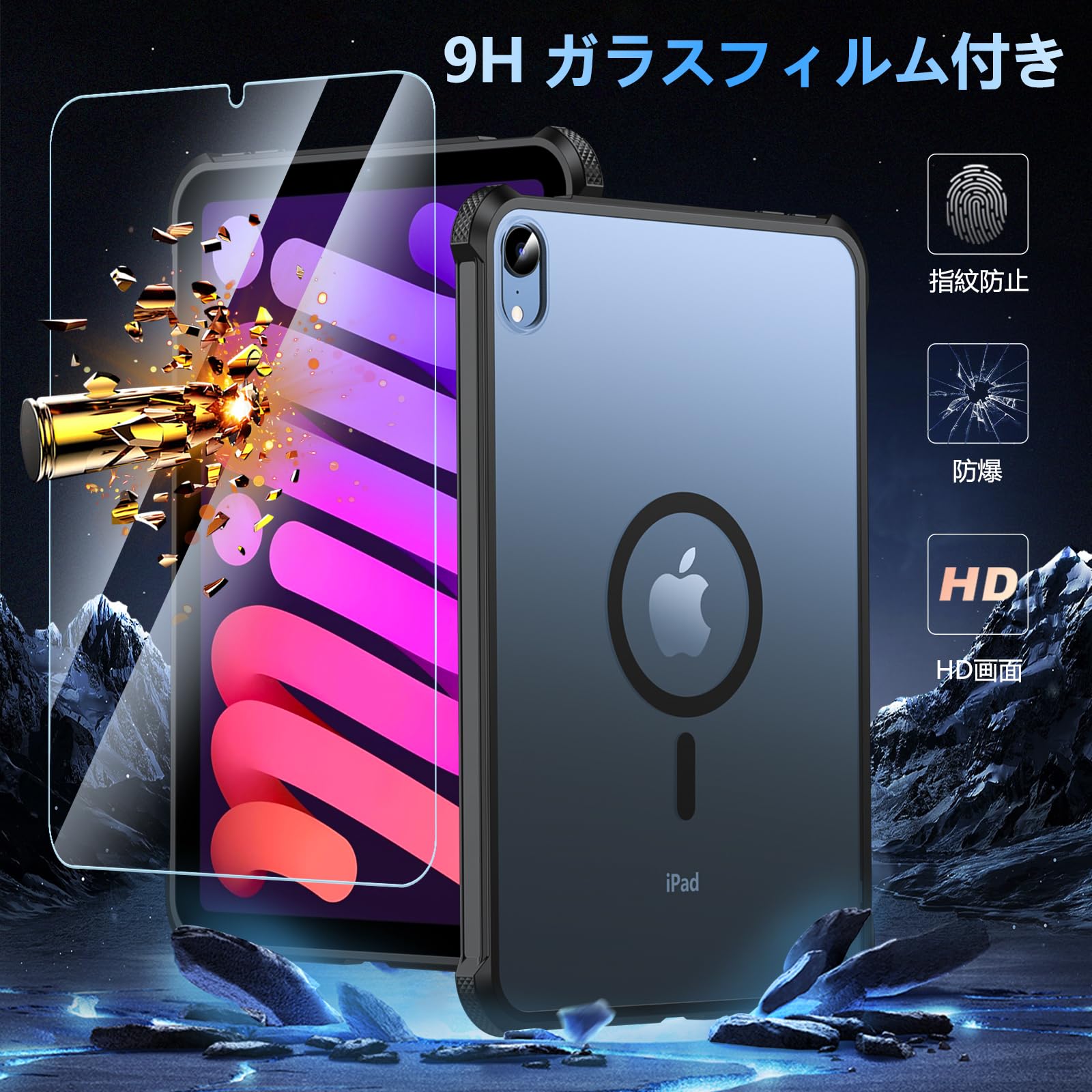 ■ 【ガラスフィルム付き&簡単に貼り付け】対応iPad mini機種にセットされた9H硬度、99.9%の透明度のガラスフィルムが付き、通常のフィルムより防爆、指紋防止、防擦傷、より良い視覚体験、より高いタッチ感度、快適な操作を実現します。