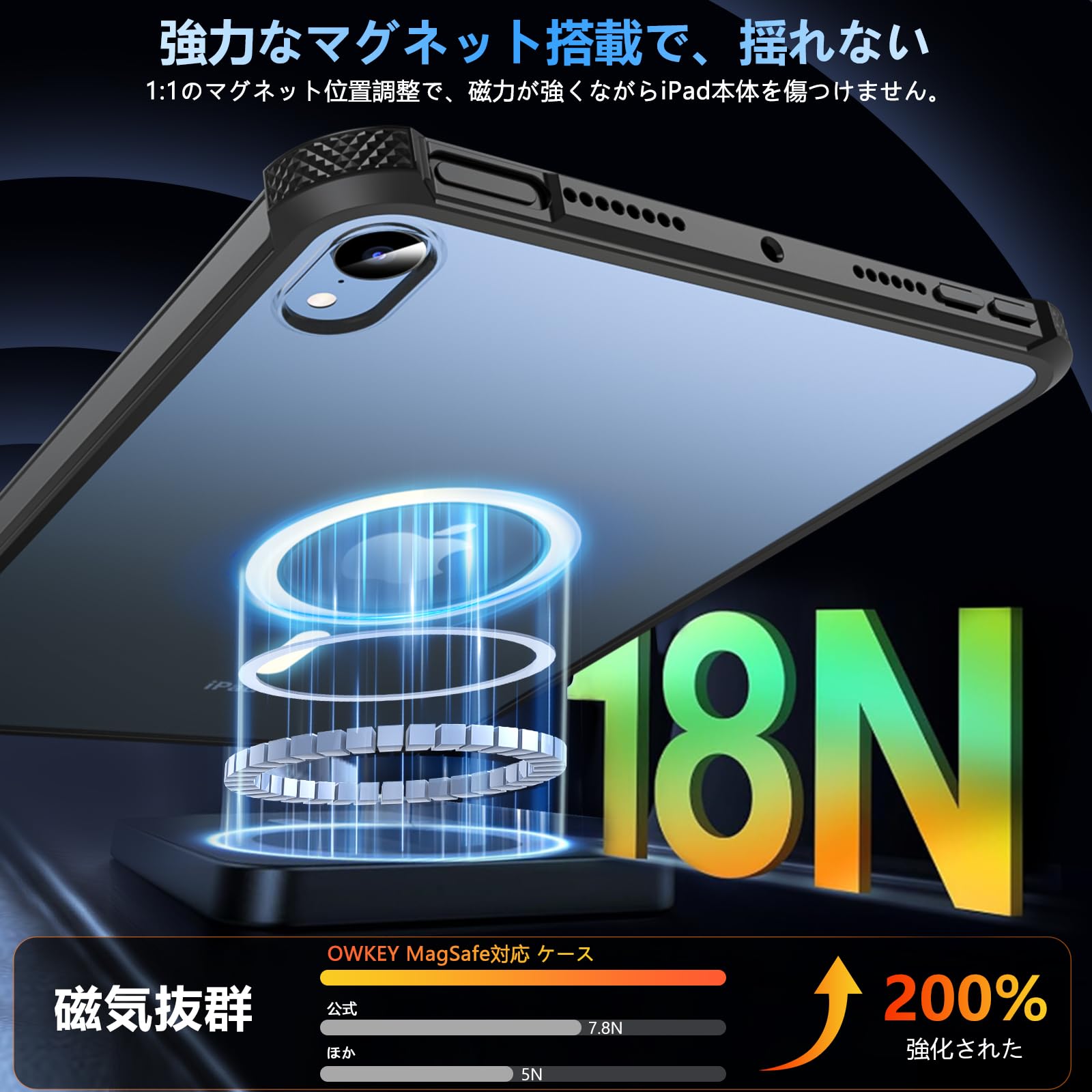 iPad mini7 ケース を外すことなく、MagSafe車載ホルダー、MagSafeカードケース、MagSafeリングなど、全てのMagSafeアクセサリーを使用できます。