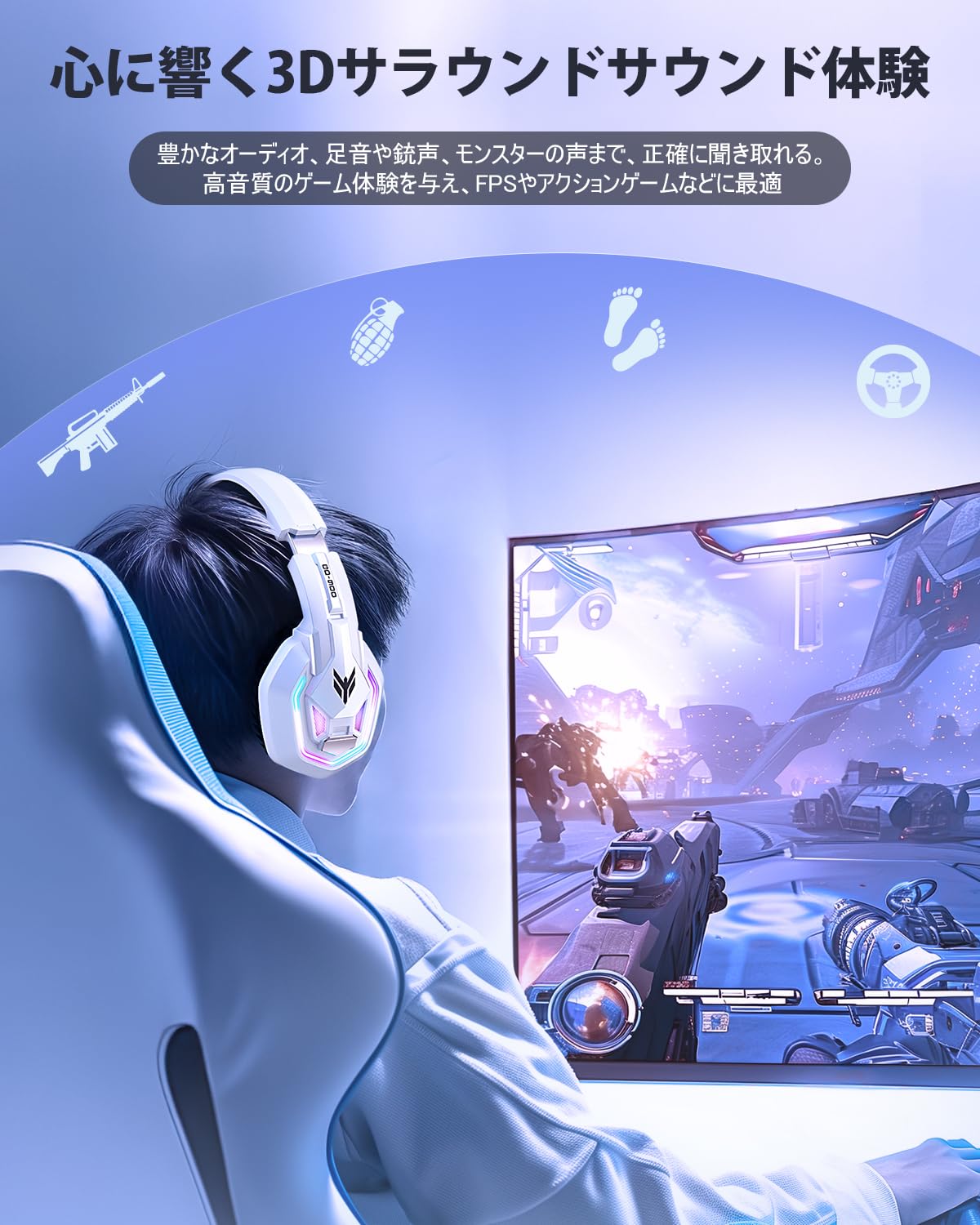 くっきりとした音像定位や、明確な方向感の再現を重視した高音質のヘッドセットで、様々なゲーム(例えばMOBA、FPS、RPG、荒野行動など)に適応です。