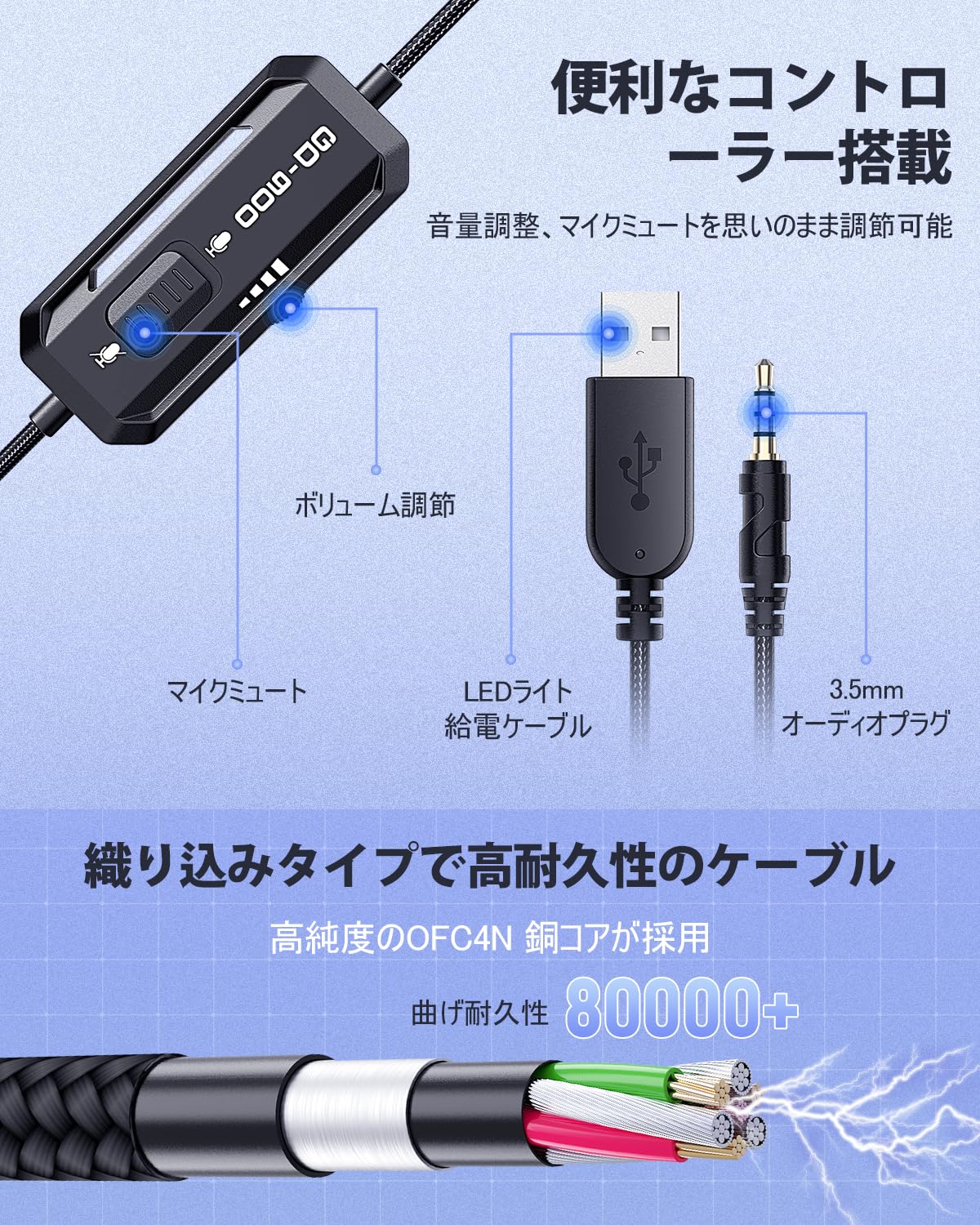 ■ 【耐久性と便利性】ワイヤーには10芯OFC無酸素銅線材の耐久性と 強度に優れた伸縮性ケーブルを採用しているため絡まりにくい設計と なっています。