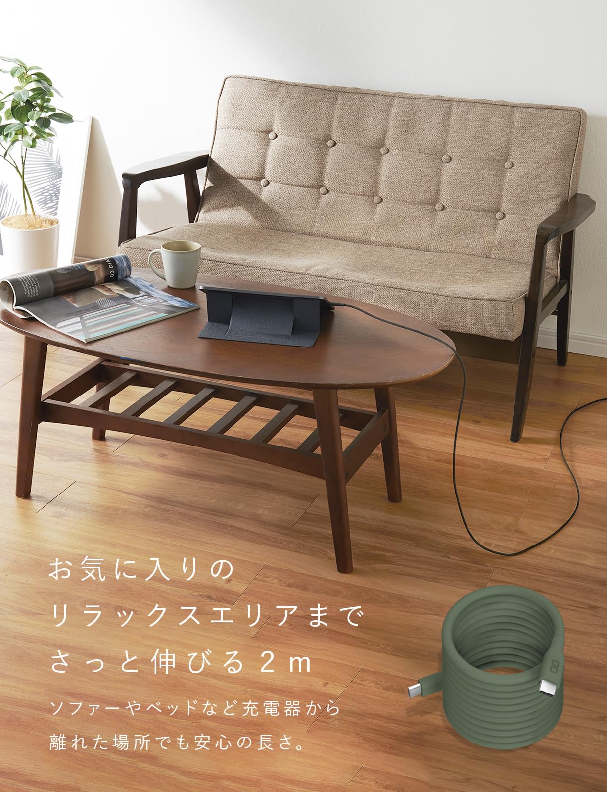 CIO 柔らかいスパイラルシリコンケーブル CtoC (Type-C/USB-C) 急速充電 磁石 マグネット吸着 充電ケーブル PD 240W データ転送 480Mbps 形状記憶 絡まりにくい iPhone 17 / 16 / 15 / Macbook Pro/Air/iPad/ノートパソコン Galaxy Google Pixel Android (アンドロイド) (モスグリーン, 2m)