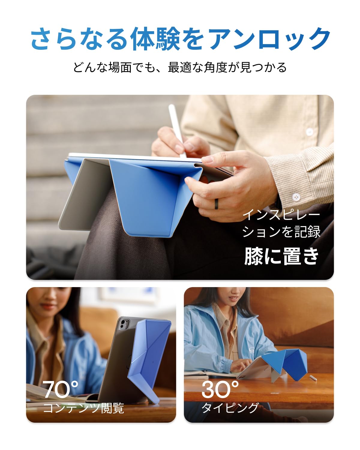 ■ 【軽くて持ち運び楽々・あらゆるシーンに対応】まるで薄くてパワフルな紙がiPadを優しく包み込むように、このiPad ケースはしっかりとした保護と多彩なアングルを提供します。
