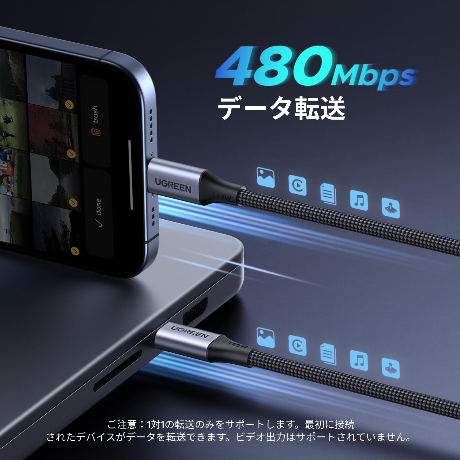 ■ 【高耐久ナイロン編み・断線に強い設計】UGREEN USB-C 2in1 充電ケーブルは10,000回以上の折り曲げ試験をクリアした高密度ナイロン編み素材を採用しております。