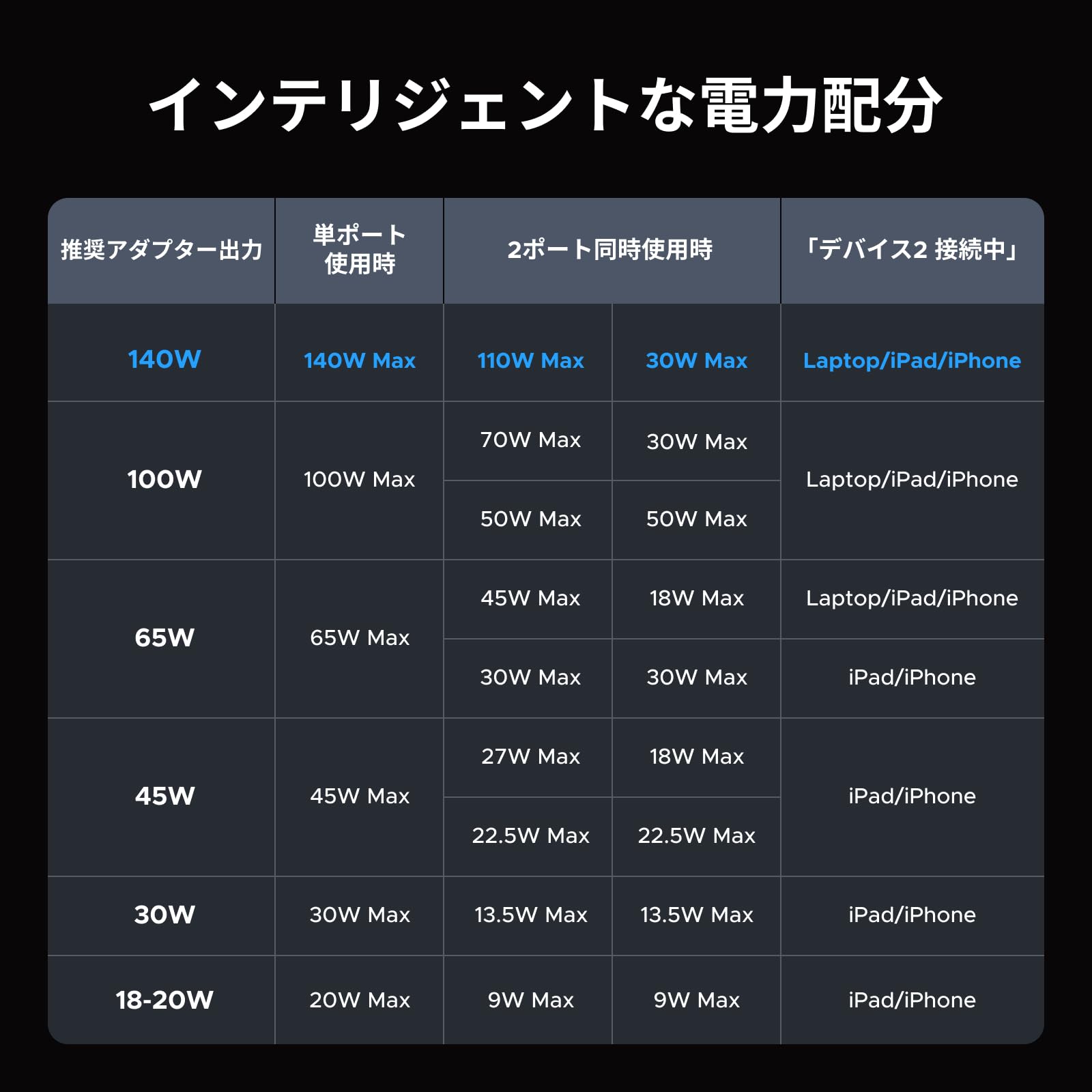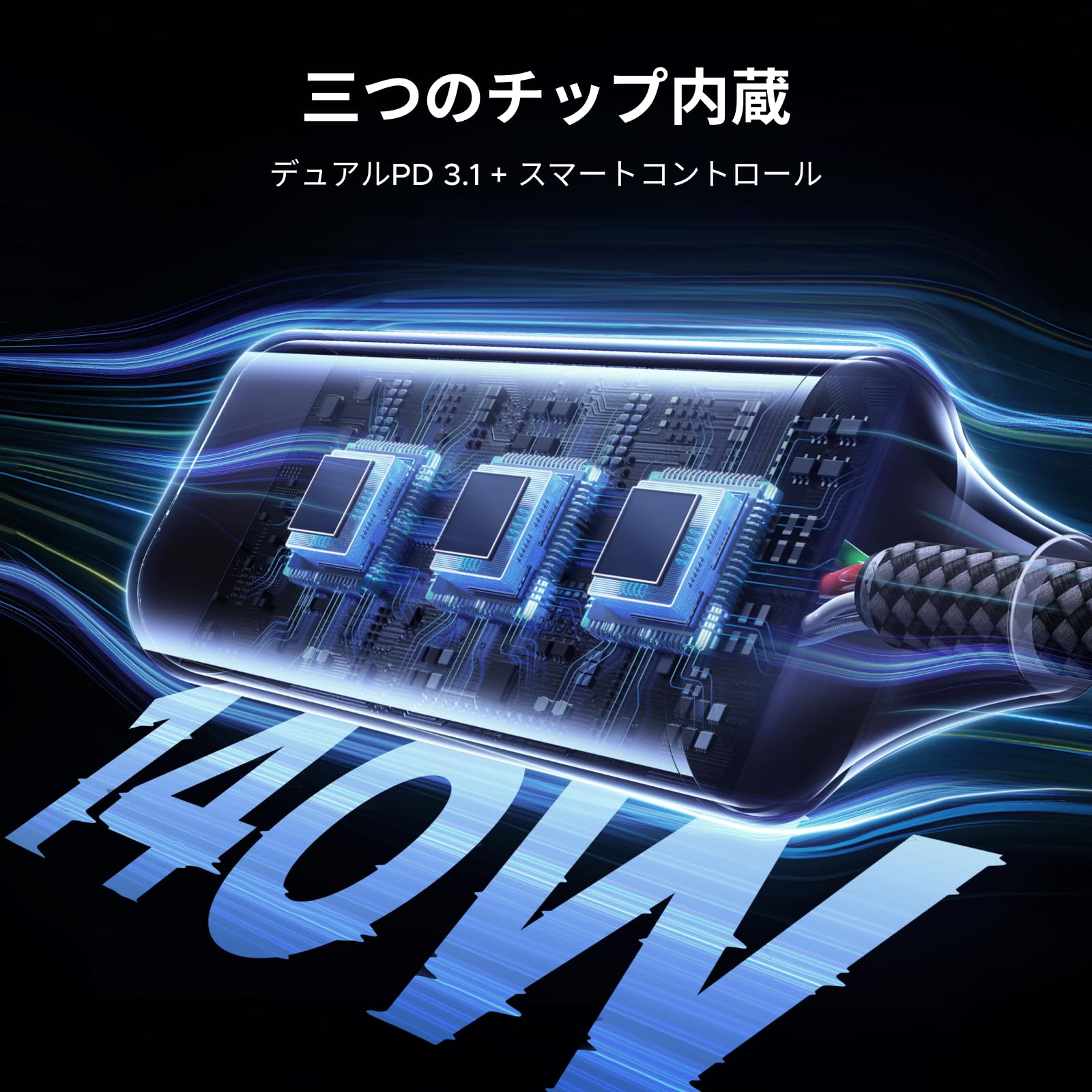 ■ 【PD3.1対応・140W超高速充電】最新PD3.1/PD3.0/PPS規格に準拠し、単ポート最大140Wの高出力に対応。