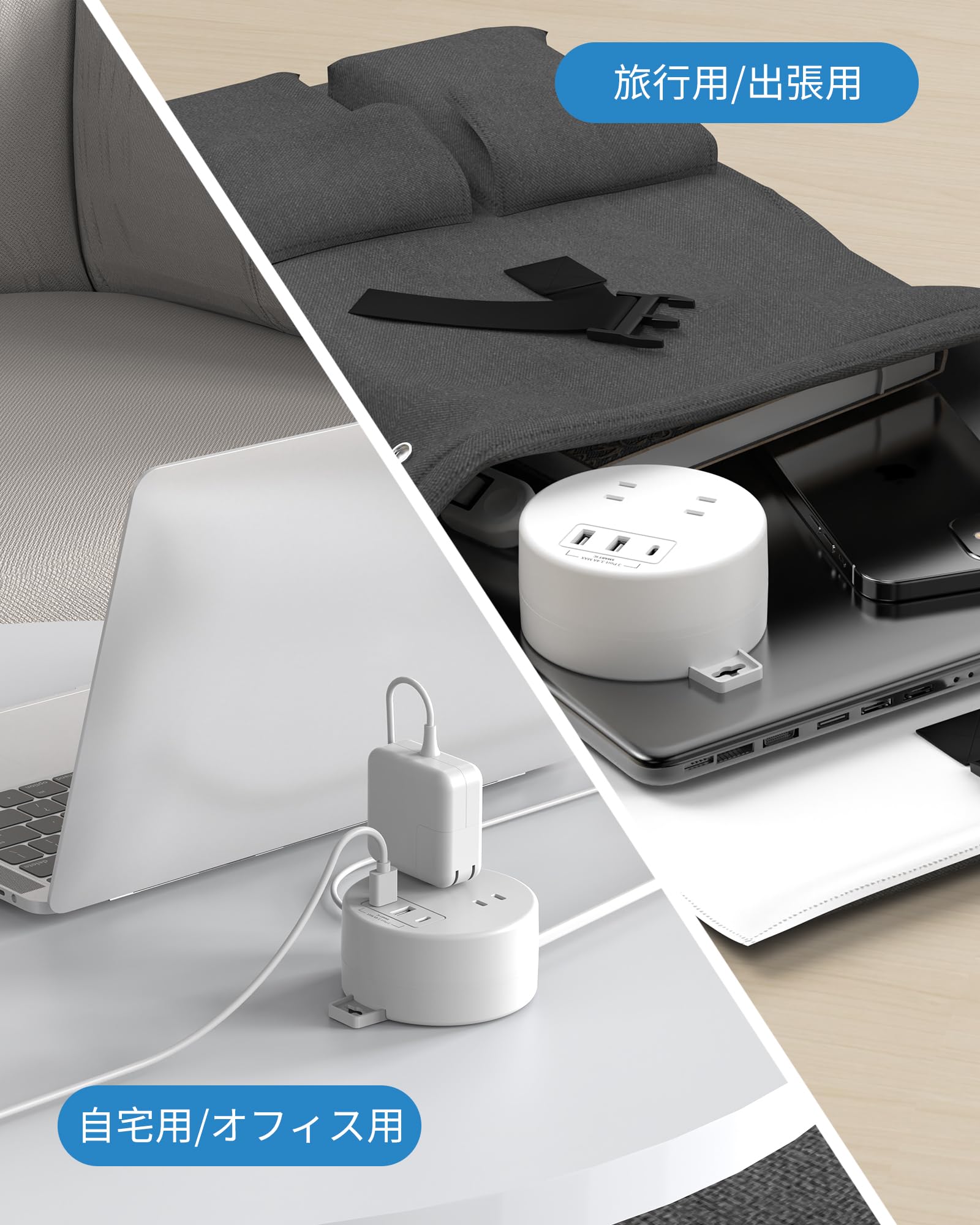 ■ 【1台5役・延長コード】2つAC差込口と1つのUSB-Cポート、2つのUSB-Aポートがある電源タップです。