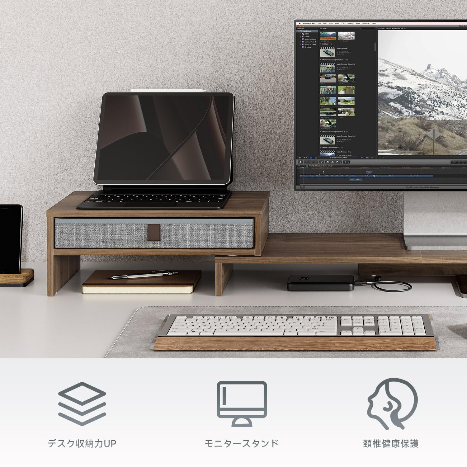 ■ 【収納たっぷり・ スペースを有効に活用】モニター台に引き出しが付いているのでペン、スマホ、ノートなどの文具小物一気に収納できます。