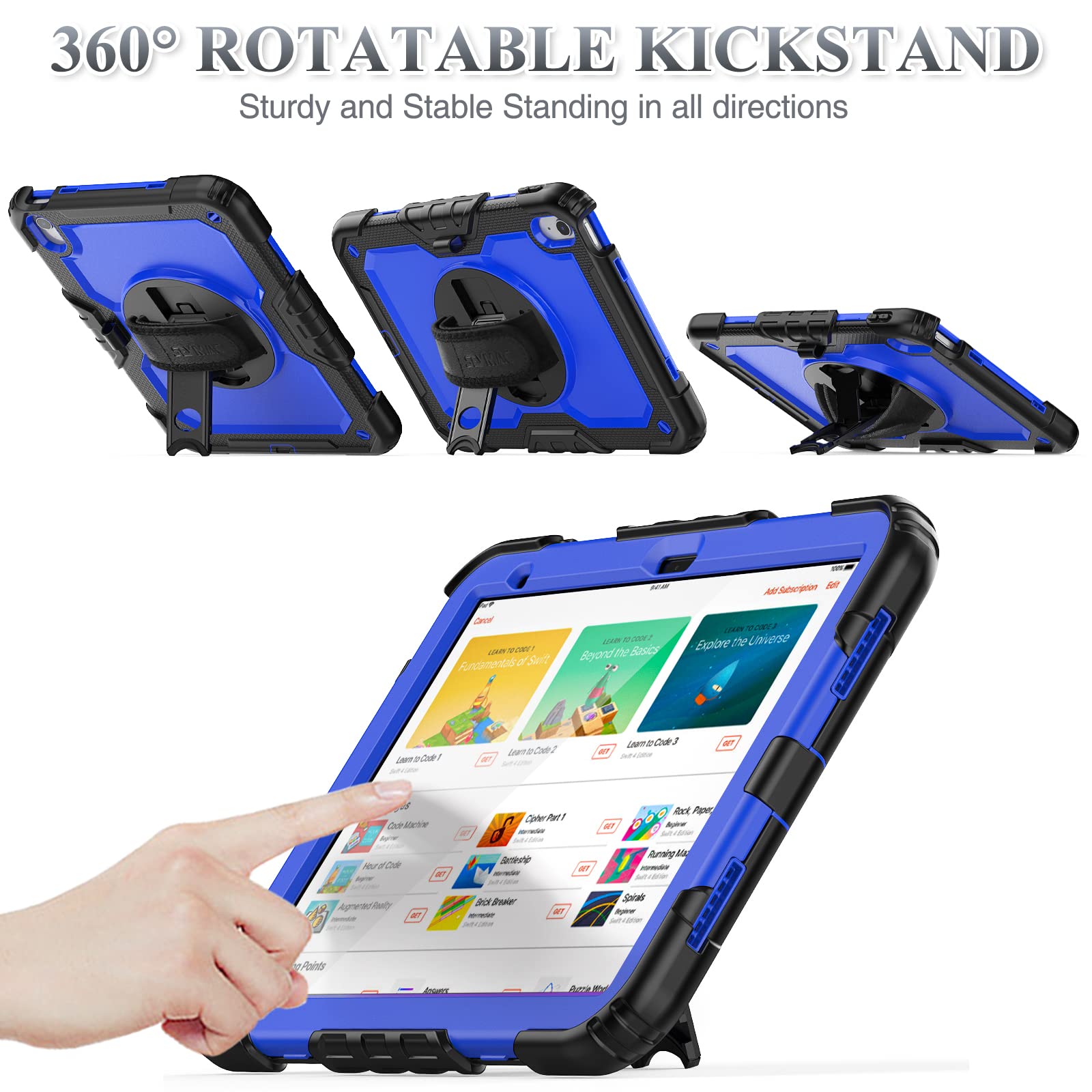 SEYMAC stock iPad(A16) 第11世代/第10世代専用ケース 耐衝撃 ペンホルダー フィルム付き前面カバー 横置き縦置きスタンド 360度回転ハンドストラップ ショルダーストラップ付き(ブルー)