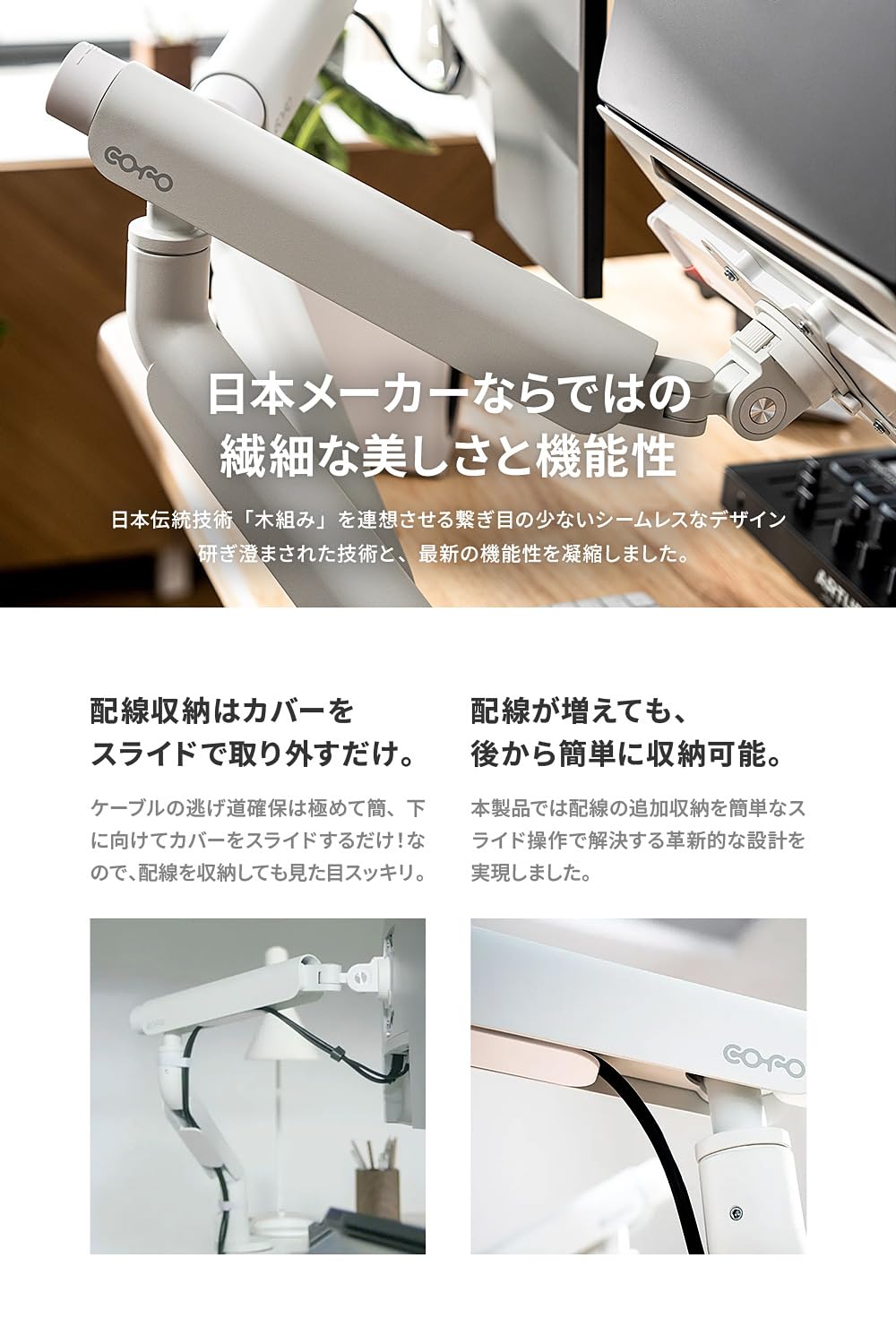 ■ 【 日本メーカーならではの洗練されたデザインと機能性 】余分な要素を削ぎ落とし、日本の伝統技術「木組み」を連想させる、繋ぎ目が少ないシームレスなデザインに仕上げました。