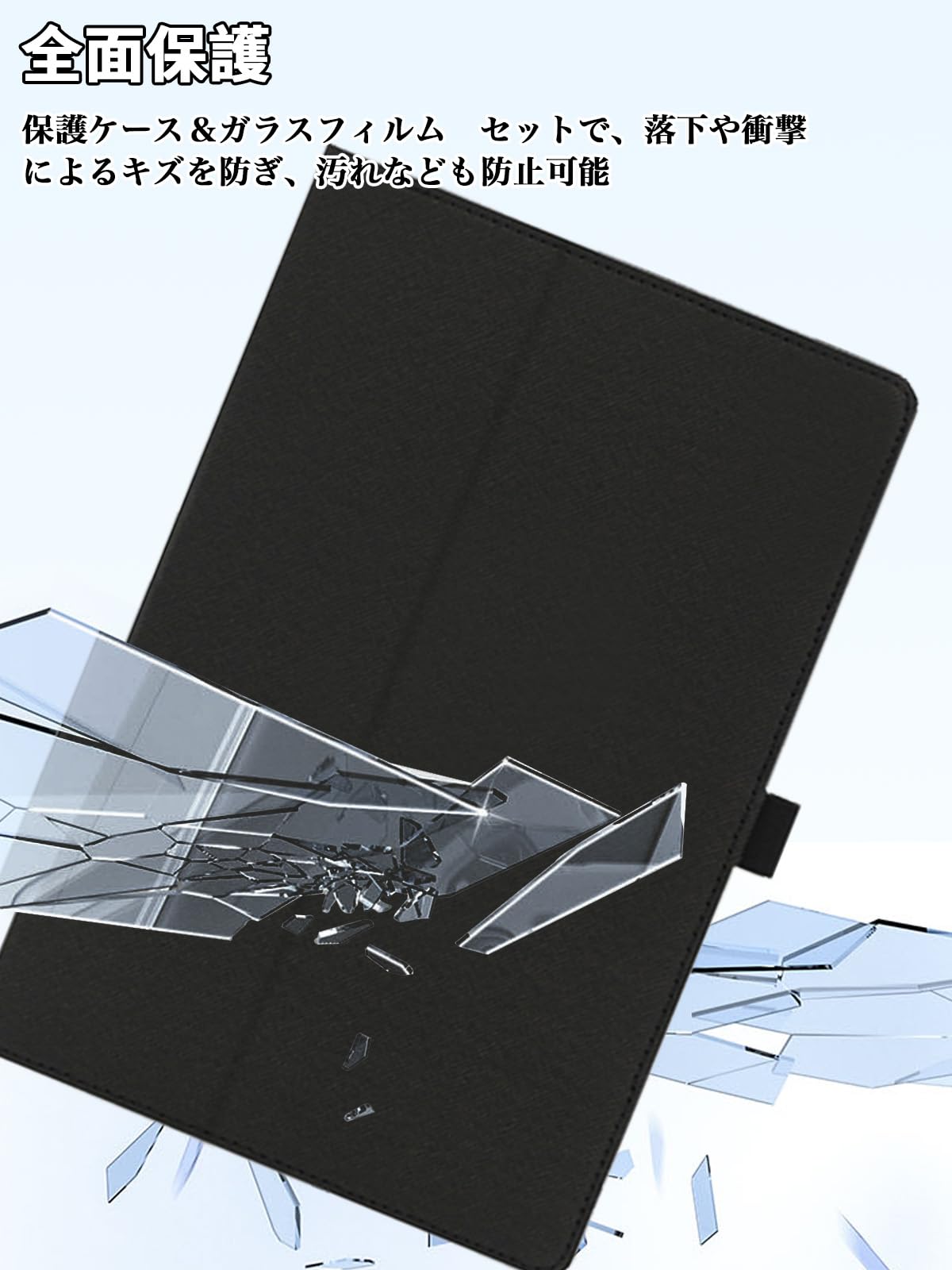 For Wpawa HT10-A ケース フィルム セット Wpawa HT10-A タブレット 10.1インチ 用 保護ケース ガラスフィルム 軽量 保護カバー 角度調整 上質PU製 汚れ防止 全方位保護 耐衝撃 【ブラック】+保護フィルム1枚