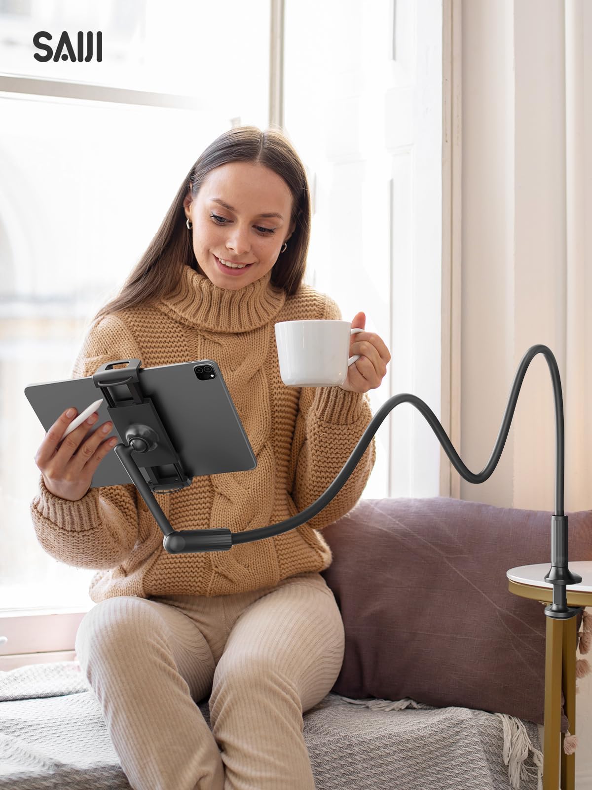 ■ 【調整が倍簡単】 SAIJIこのタブレットスタンドの上部は、クランプとフレキシブルリンケージで構成されています。