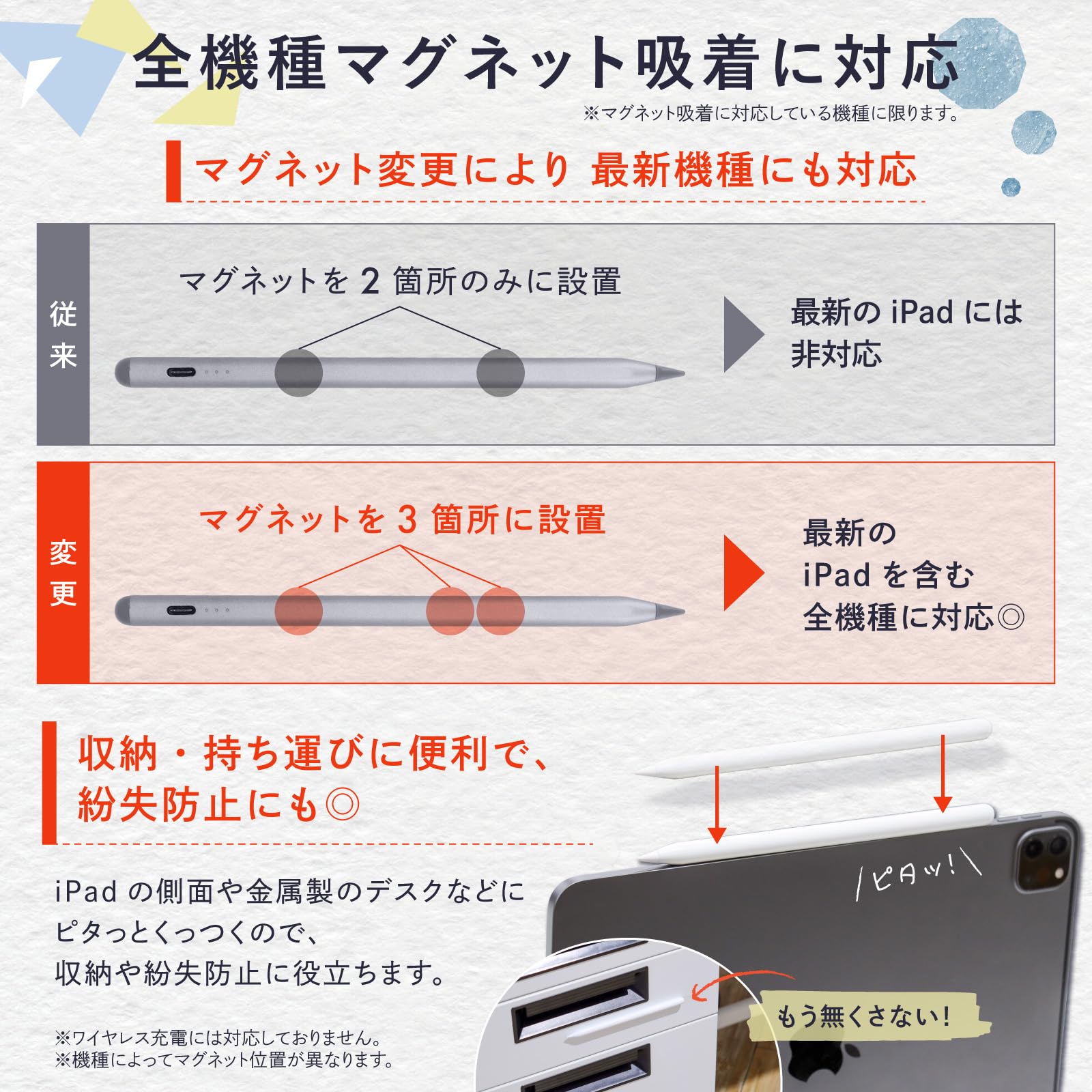 ベルモンド iPad用 タッチペン スタイラスペン マグネット変更 | アップルペンシル apple pencil 対応 ペン先 4個 金属製 付属 | 傾き感知/磁気吸着/パームリジェクション iPad Pro air mini 対応 白 B1420 スラスラかける君 #1 ホワイト