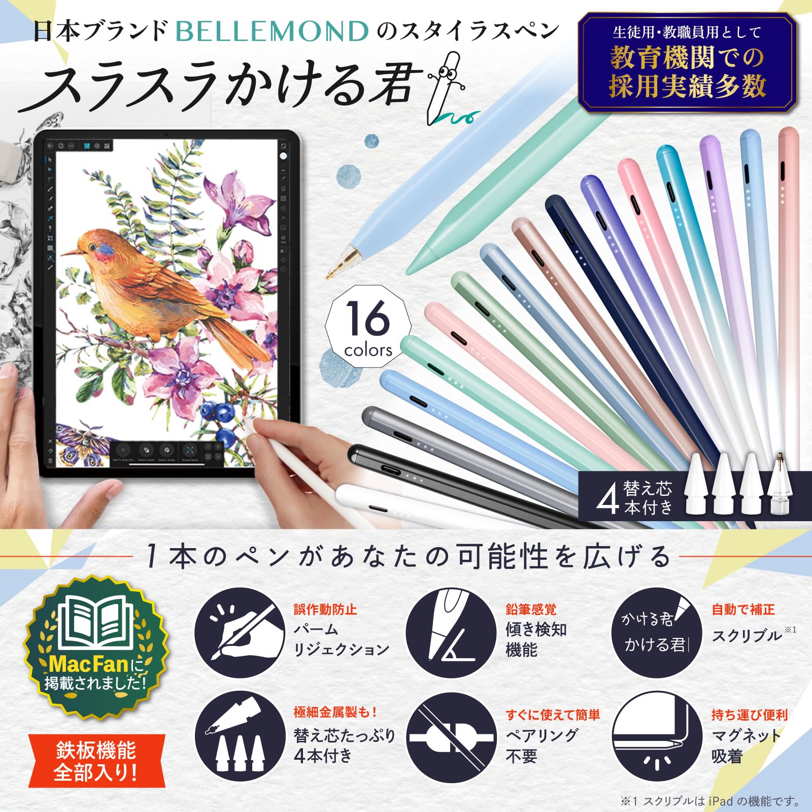 ベルモンド iPad用 タッチペン スタイラスペン マグネット変更 | アップルペンシル apple pencil 対応 ペン先 4個 金属製 付属 | 傾き感知/磁気吸着/パームリジェクション iPad Pro air mini 対応 青 B1420 スラスラかける君 #7 メタリックブルー