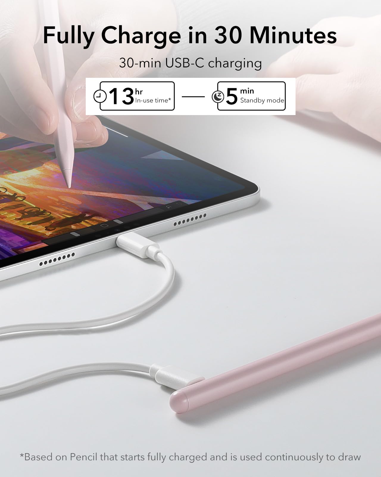 ESR iPad ペンシル 2025-2018, 用iPad第11世代(A16)/第10世代、iPad Air 11/13, iPad Pro 11/12.9/13, iPad Mini 6/5, ピンク