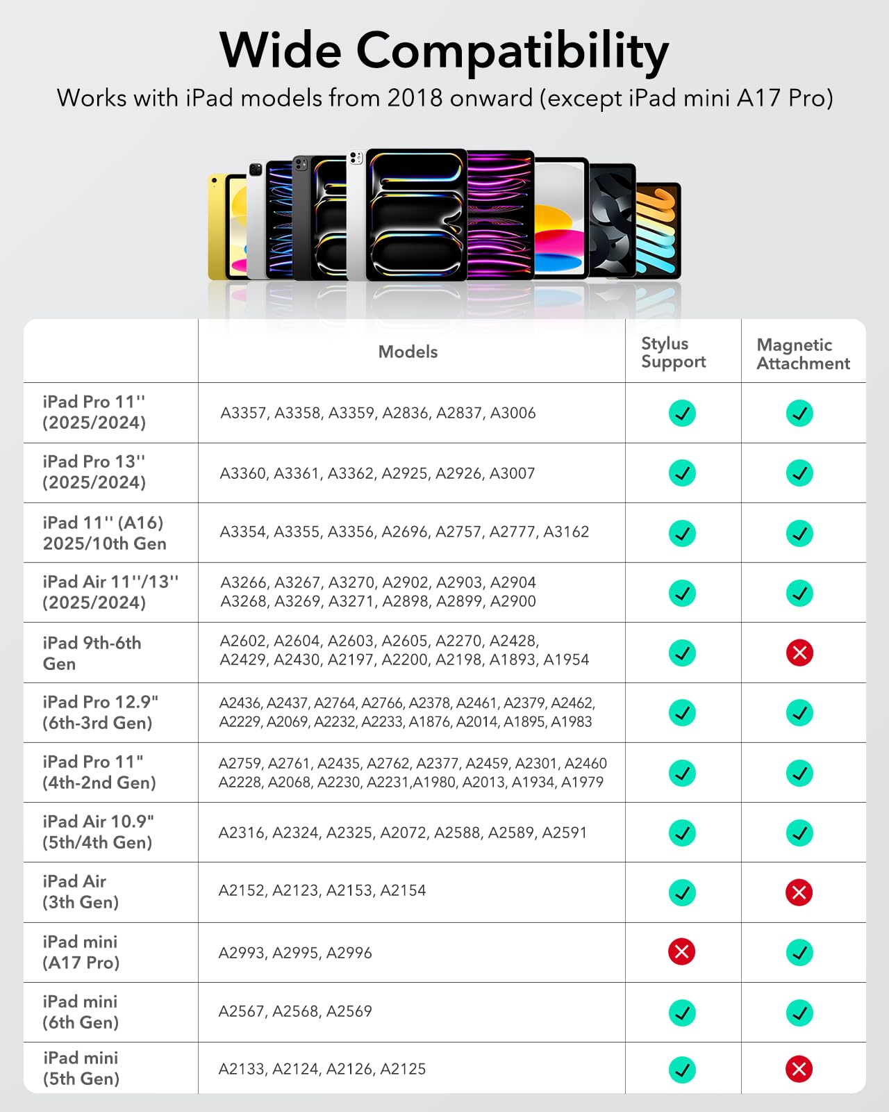 ■ 【対応機種】 iOS 12.2以上を搭載した2018年以降に発売されたiPadに対応、NEW 2025 iPad 11th(A16)&iPad Air 11インチ&13インチ(M3)、iPad Pro 11インチ&13インチ(M4)、iPad 10/9/8/7/6世代、iPad Air 11/13(M2)、iPad Air 3/4/5世代、iPad Pro 11インチ 1/2/3/4世代、iPad Pro 12.9インチ 3/4/5/6世代、iPad Mini 5/6世代; 他のiPadモデル、iPhone、Android、Microsoft、またはその他のデバイスとは互換性がありません。