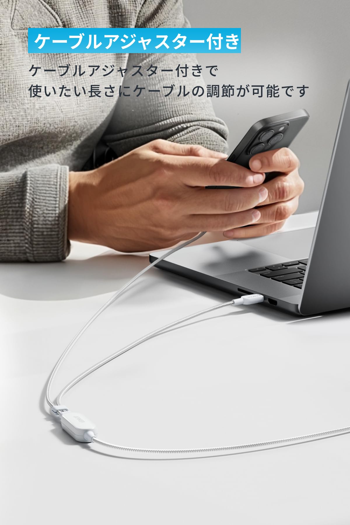 使いたい長さにケーブルの調節が可能です。