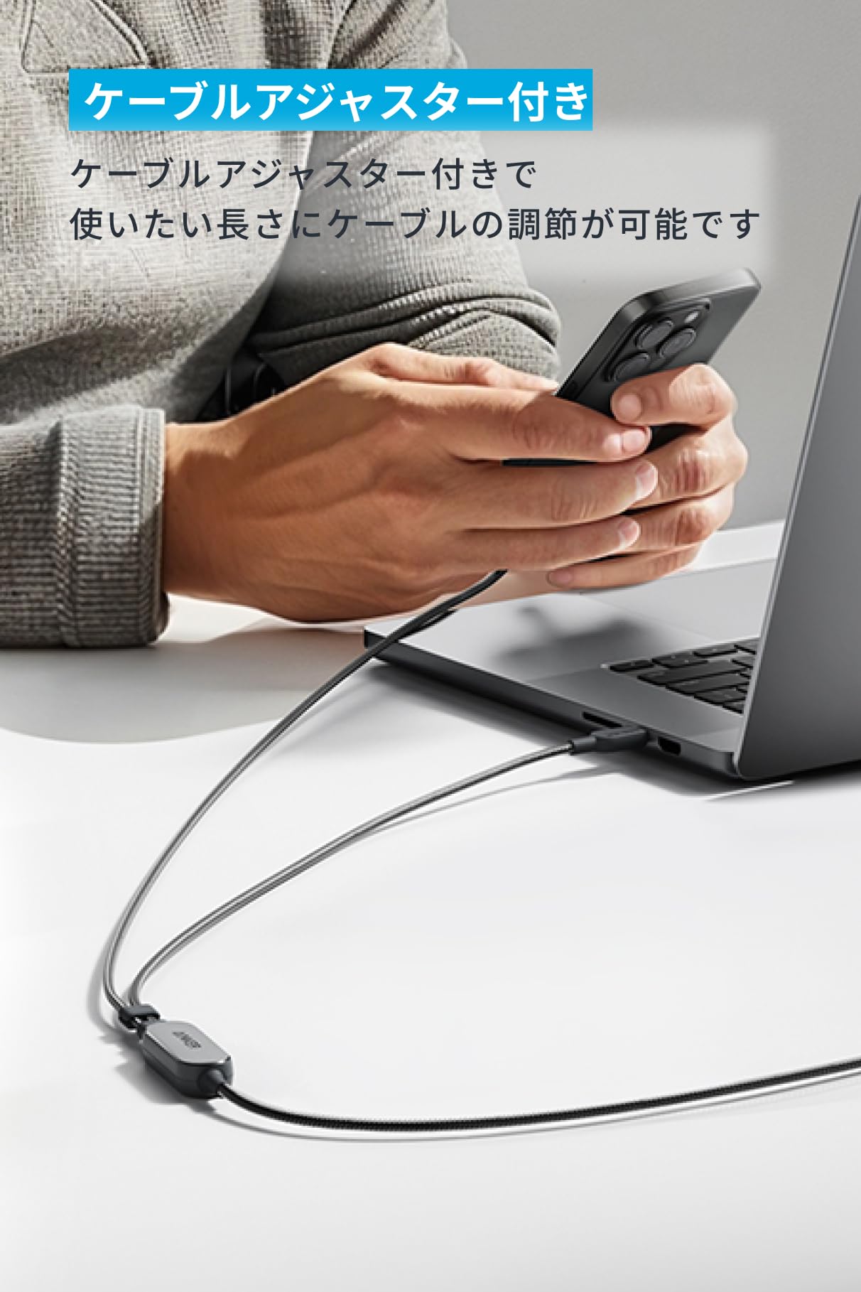 使いたい長さにケーブルの調節が可能です。
