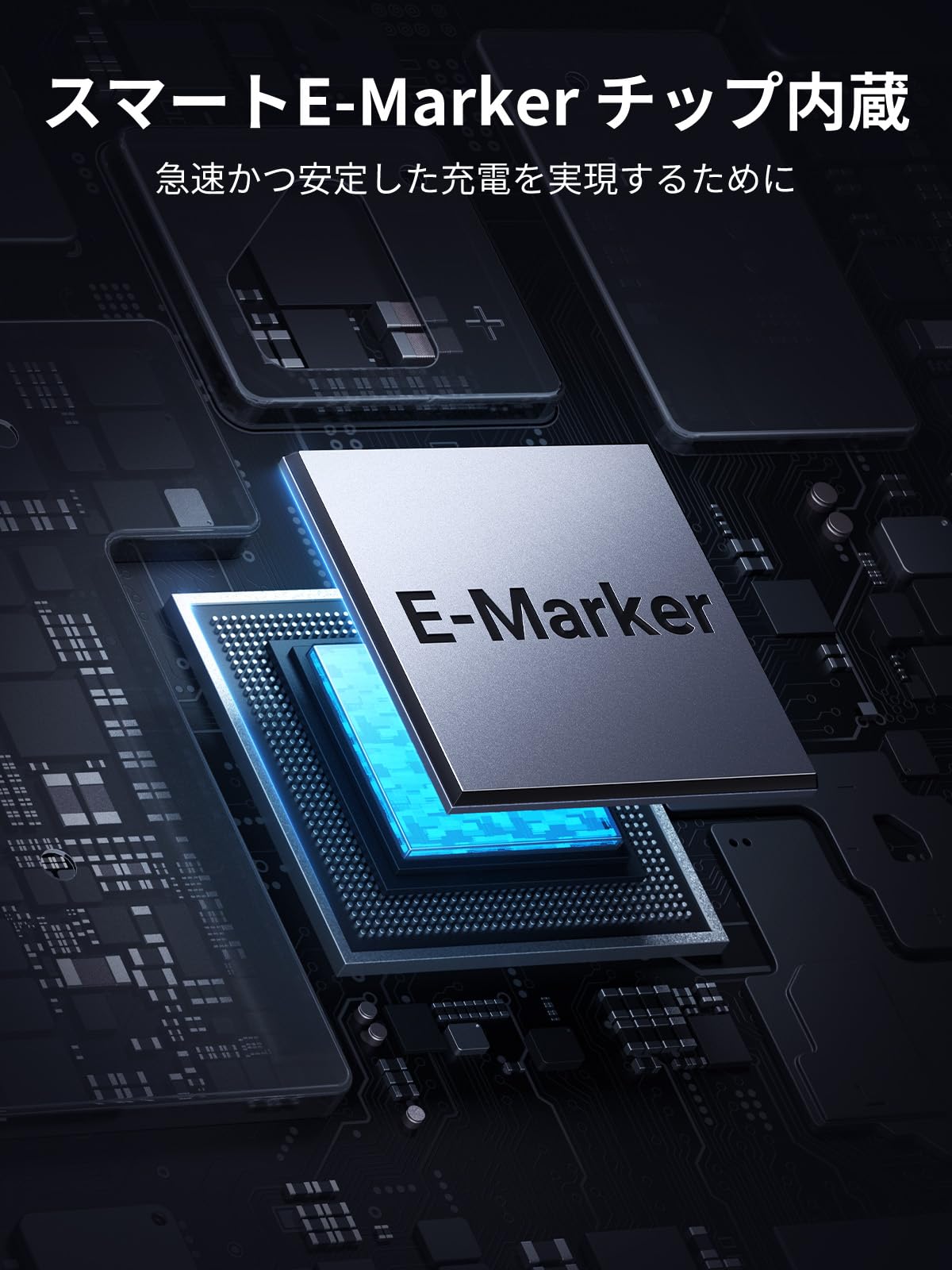 e-markチップを内蔵し、接続デバイスに応じて充電出力を知能的に調節——高速かつ安定な充電を実現するUSB Cケーブル!