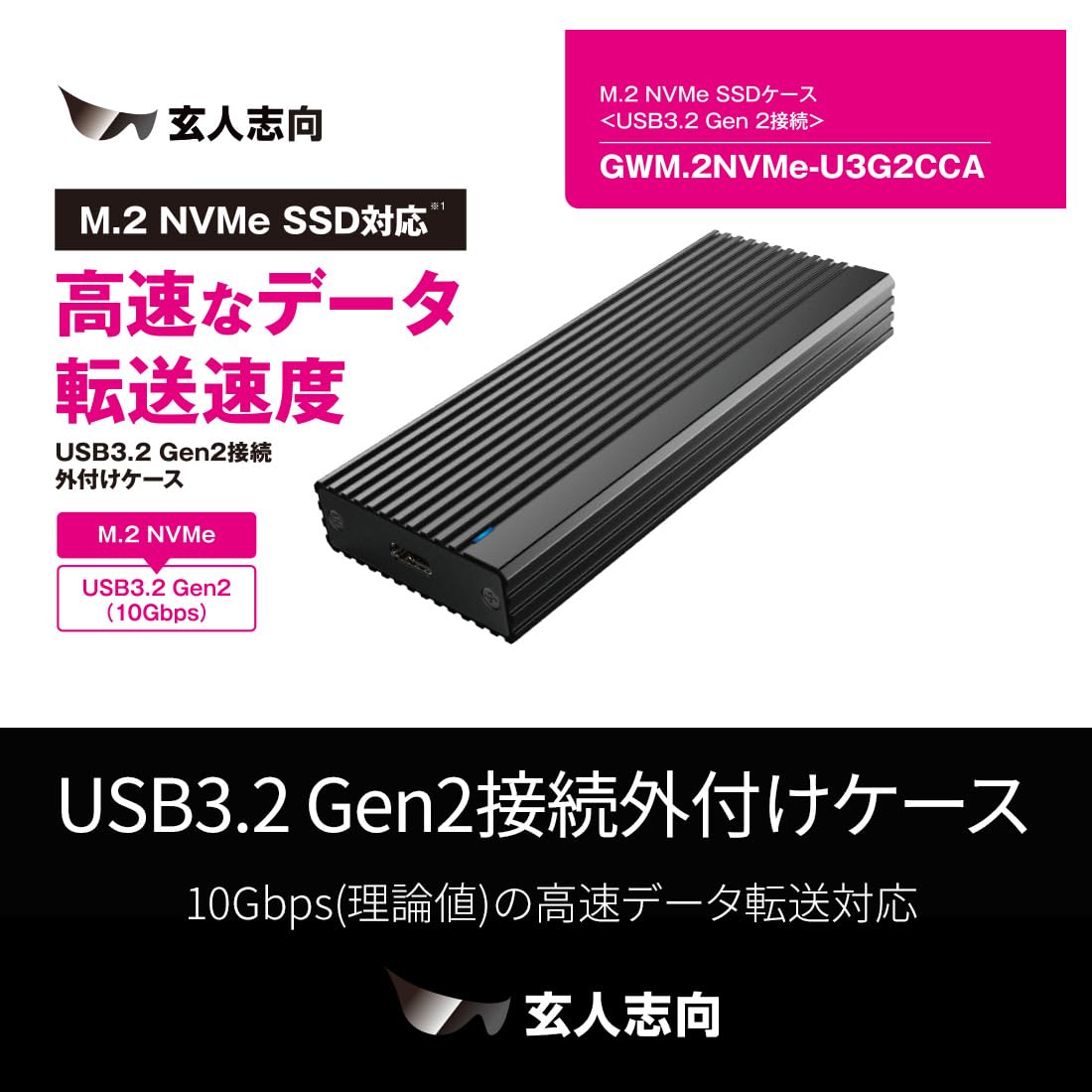 玄人志向 外付け M.2 NVMe SSD ケース Type-C / Type-A (USB3.2 Gen2) 対応 最大容量 4TB アルミボディ & 熱伝導シート付属 【国内正規品】 GWM.2NVMe-U3G2CCA