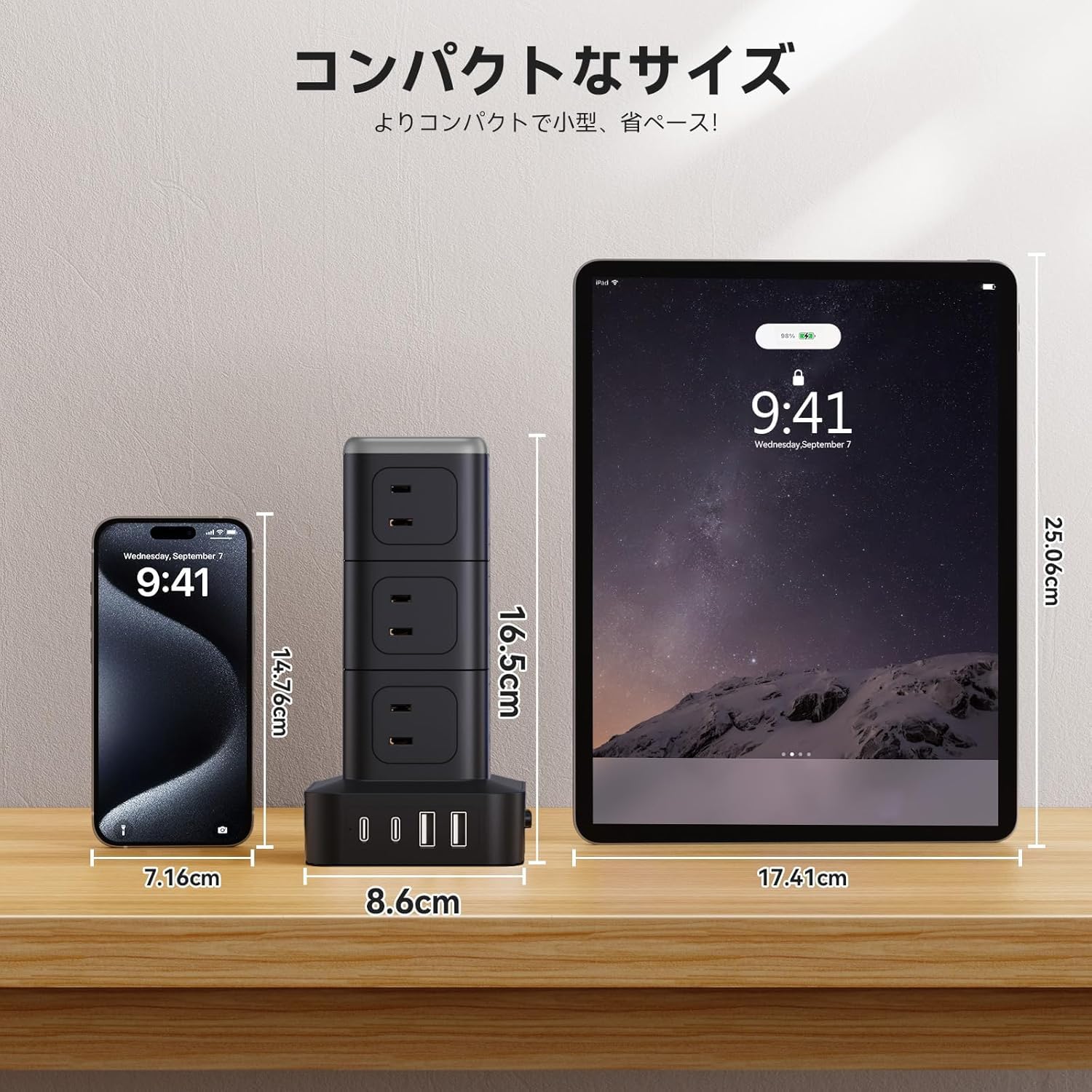 ■ コンパクト&携帯に便利:NTONPOWERこのコンセントはサイズが8.5x8.5x16.5cm、重さが530g、一般的なタワーコンセントよりも小さく軽量で、持ち運びにも便利です。