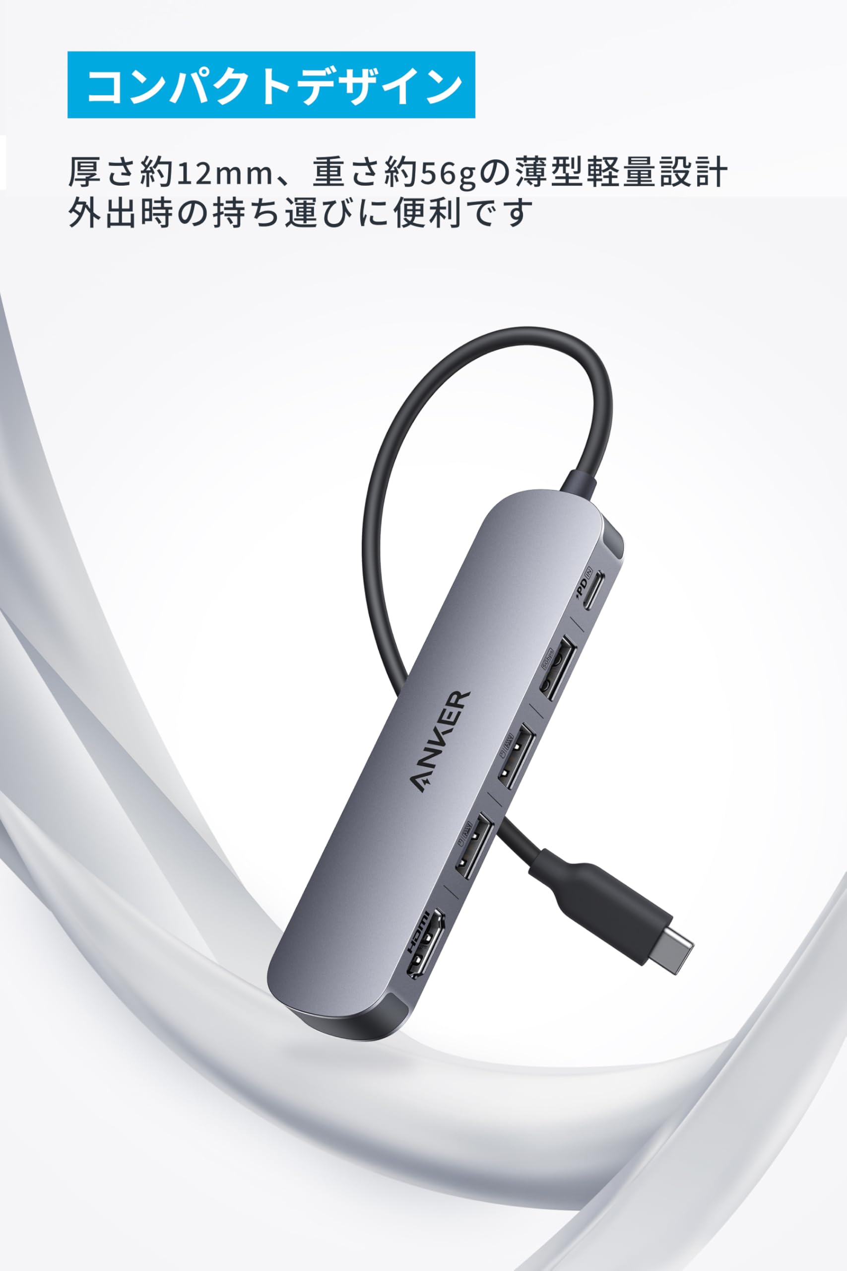 Anker USB-C ハブ (5-in-1, 4K, HDMI) グレー 100W USB PD対応 4K HDMIポート5Gbps 高速データ転送 USB-C/USB-Aポート搭載