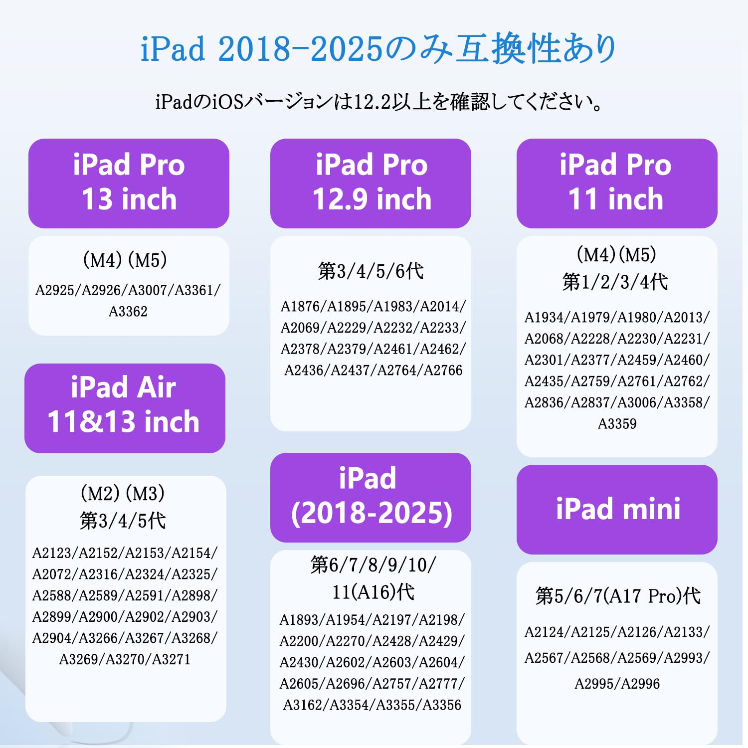 ■ 【2018-2025互換性ありiPad専用ペン】iPad Pro 11インチ(第1/2/3/4/世代)(M5) 、iPad Pro 12.9インチ(第3/4/5/6世代) 、iPad Pro 13(M4&M5)、iPad Air11/13インチ (第3/4/5/M2/M3世代) 、iPad (第6/7/8/9/10/11(A16)世代)、iPad mini (第5/6/7世代)。