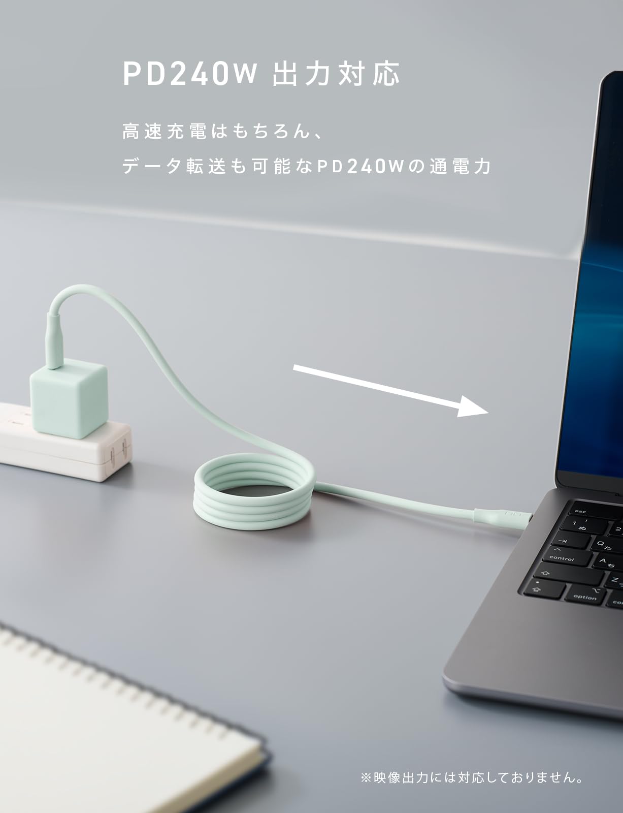CIO 柔らかいスパイラルシリコンケーブル CtoC (Type-C/USB-C) 急速充電 磁石 マグネット吸着 充電ケーブル PD 240W データ転送 480Mbps 形状記憶 絡まりにくい iPhone 17 / 16 / 15 / Macbook Pro/Air/iPad/ノートパソコン Galaxy Google Pixel Android (アンドロイド) (ホワイト, 1m)