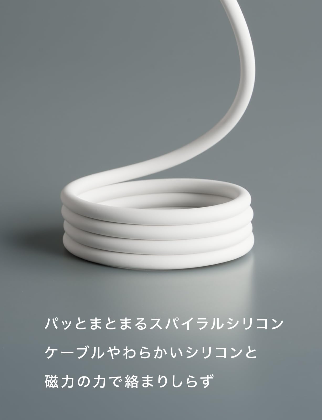 ケーブルどうしがくっついて、コイルケーブルのようにスパイラル状にきれいにまとまります。