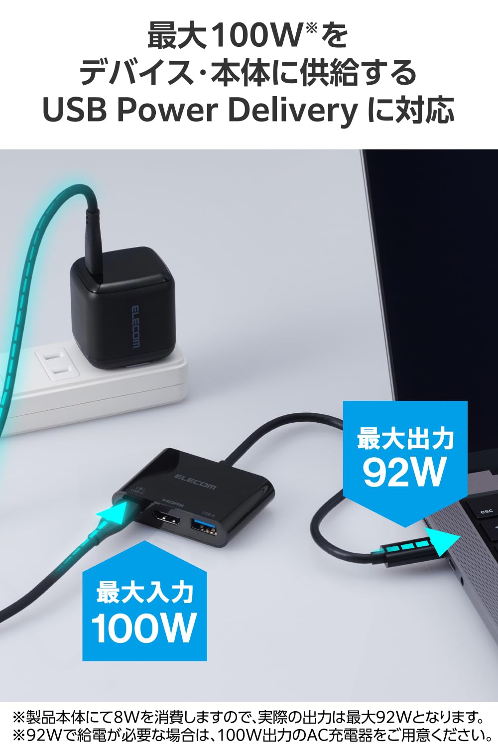 エレコム USB-C ハブ ドッキングステーション 3in1 PD100W USB-A(7.5W供給 スマホ充電対応) HDMI 4K対応 高速データ転送 5Gbps ブラック DST-W11