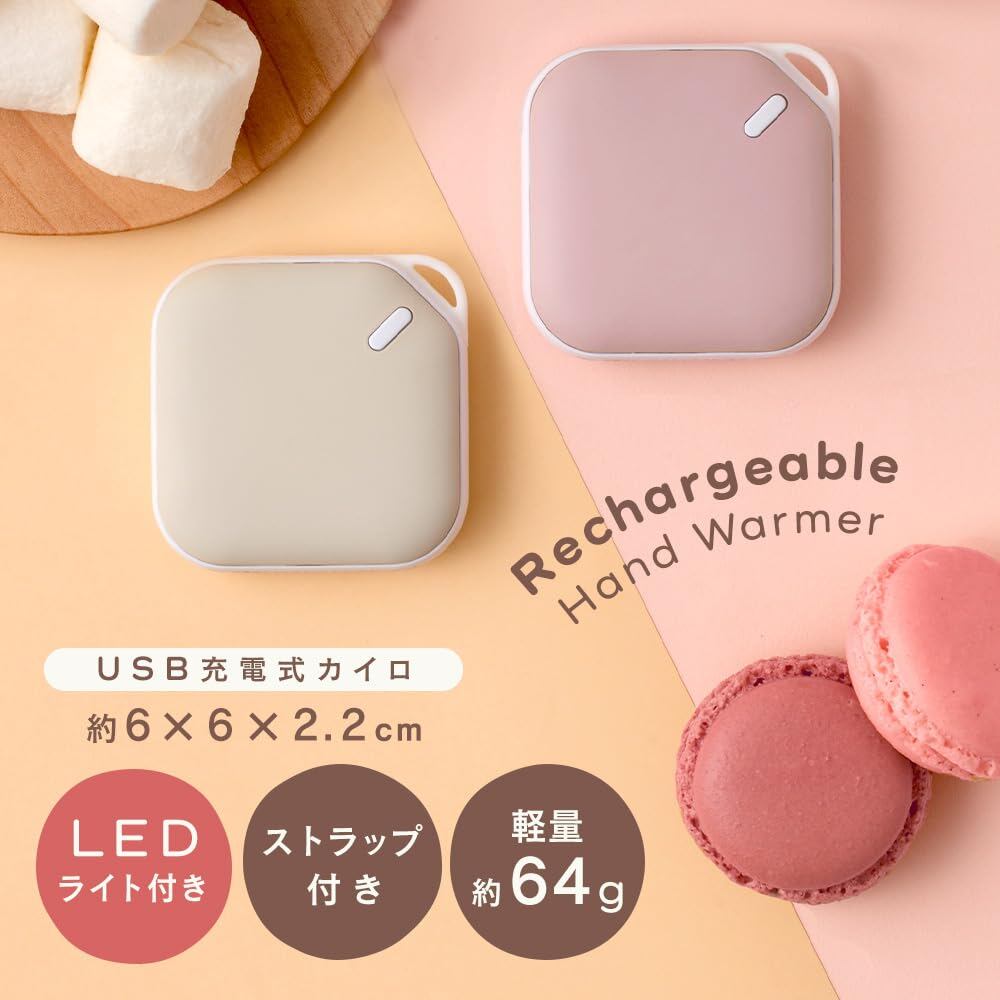 アイリスプラザ 充電式カイロ 速暖 LEDライト付き 防災 災害 避難用 キャンプ 通勤 通学 電子かいろ スクエア ピンク(Pink)