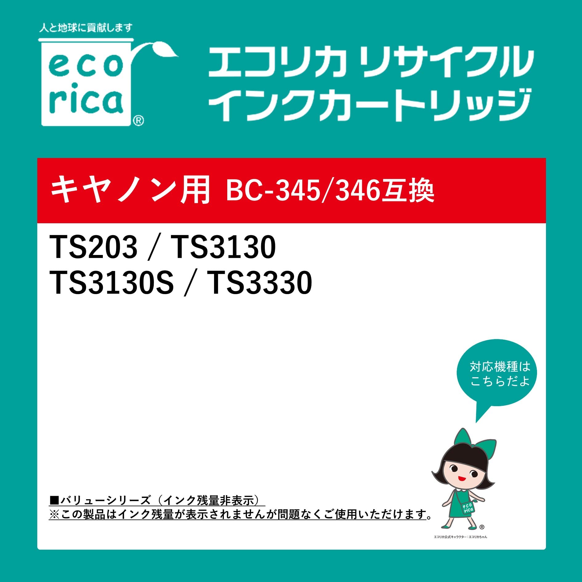 エコリカ キヤノン BC-346XL対応リサイクルインク 大容量 カラー/染料 TS203 TS3130 TS3130S TS3330 残量表示非対応 封筒パッケージ