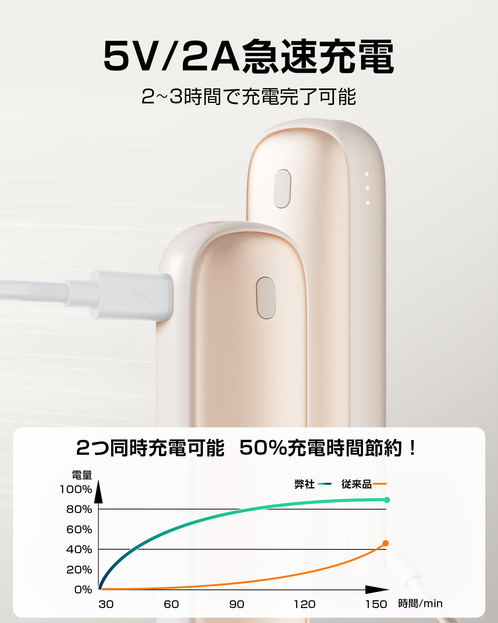 2つのハンドウォーマーを同時に充電することができ、わずか数時間でフル充電が完了します。