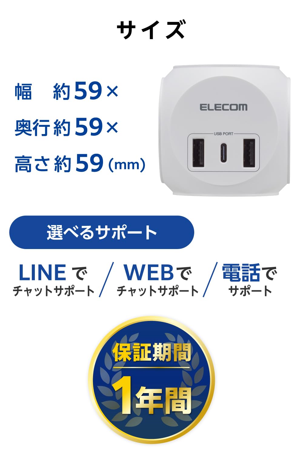 プラグを折りたたんで持ち運べるコロンとした丸い形のUSB電源タップです。