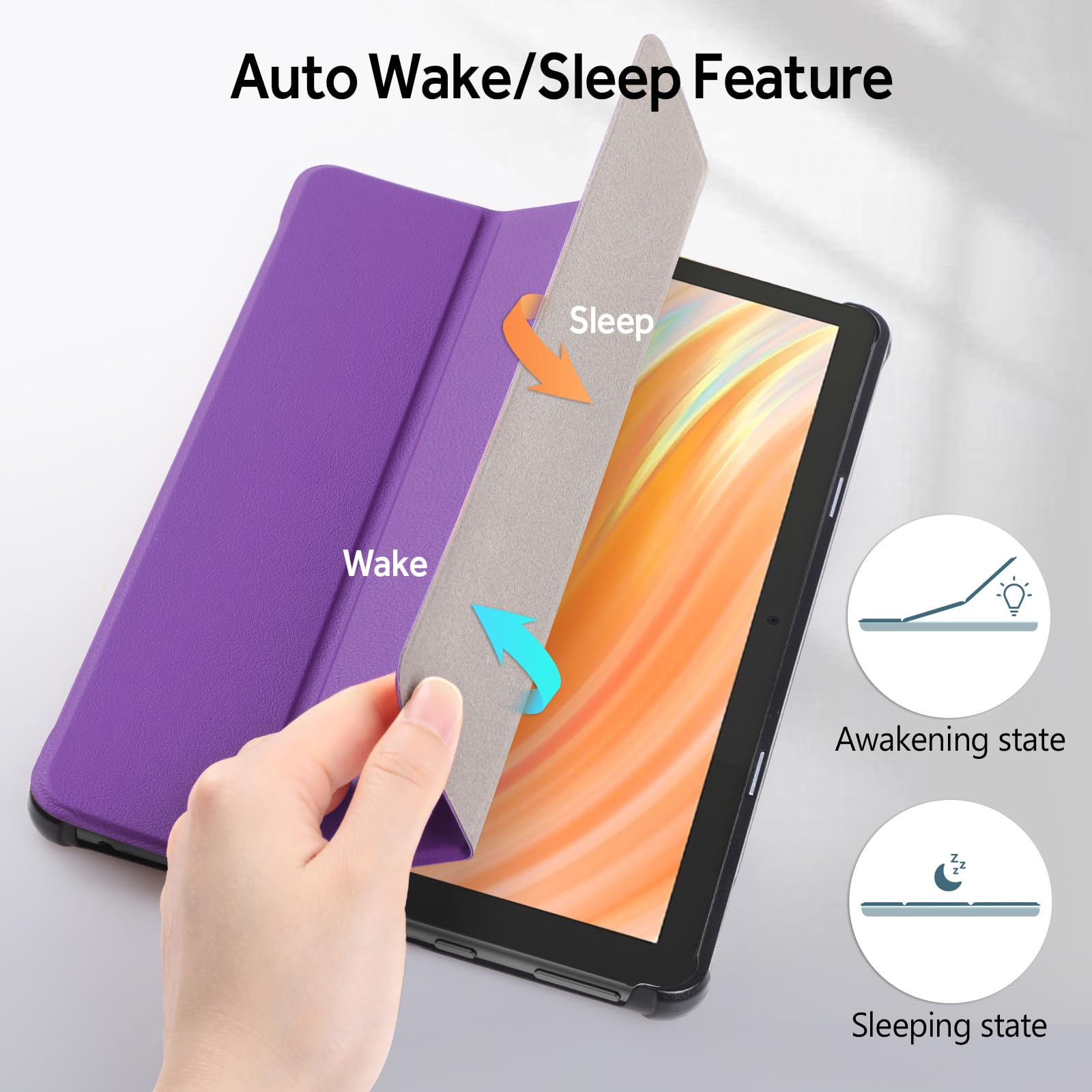 Hianjoo Fire HD 10 2023 対応 ケース 10インチ タブレットケース Fire HD 10 第13世代 対応 カバー スタンド機能付き オートスリープ機能 全面保護ケース 耐衝撃 擦り傷防止 - パープル