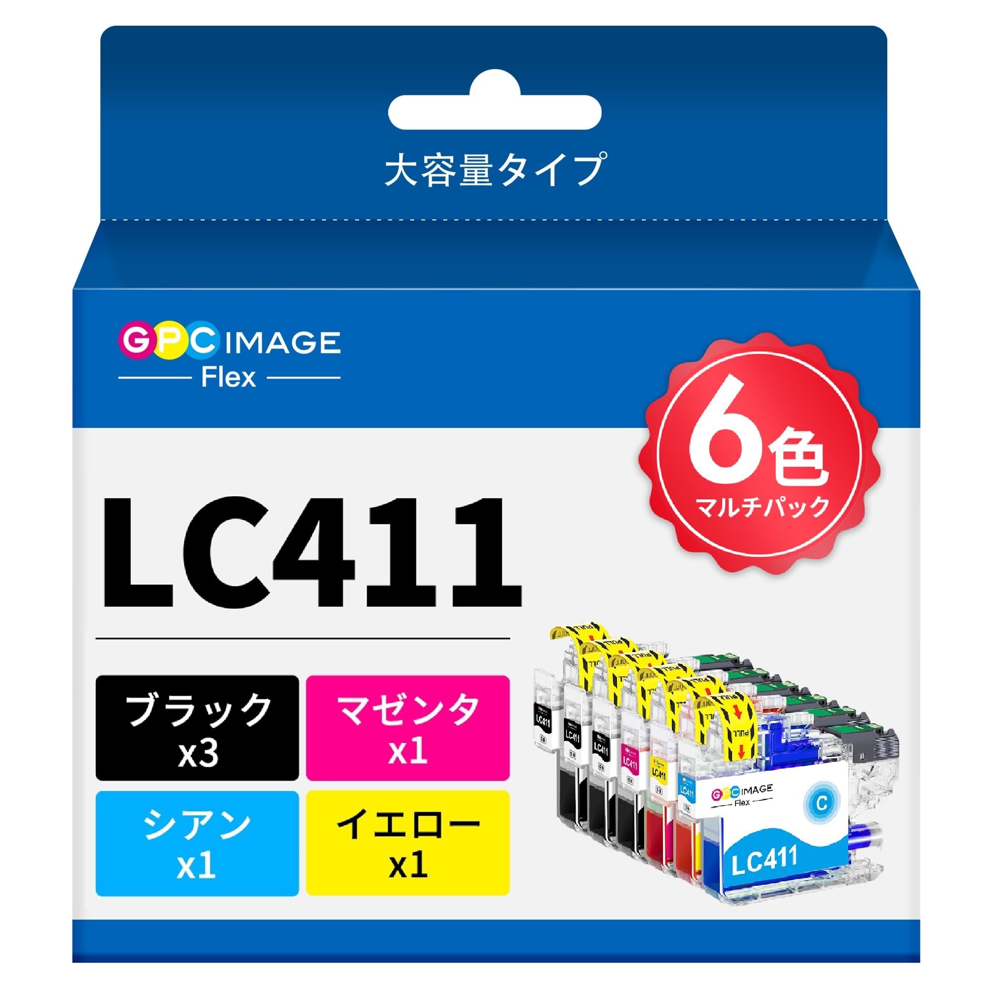 GPC Image Flex LC411 LC411-4PK ブラザー 用 インク LC411 4色セット + LC411BK 2本 大容量 brother 対応 インクカートリッジ LC411 LC411BK J926N J904N J739DN J939DN 互換インク【新・旧パッケージ任意発送】