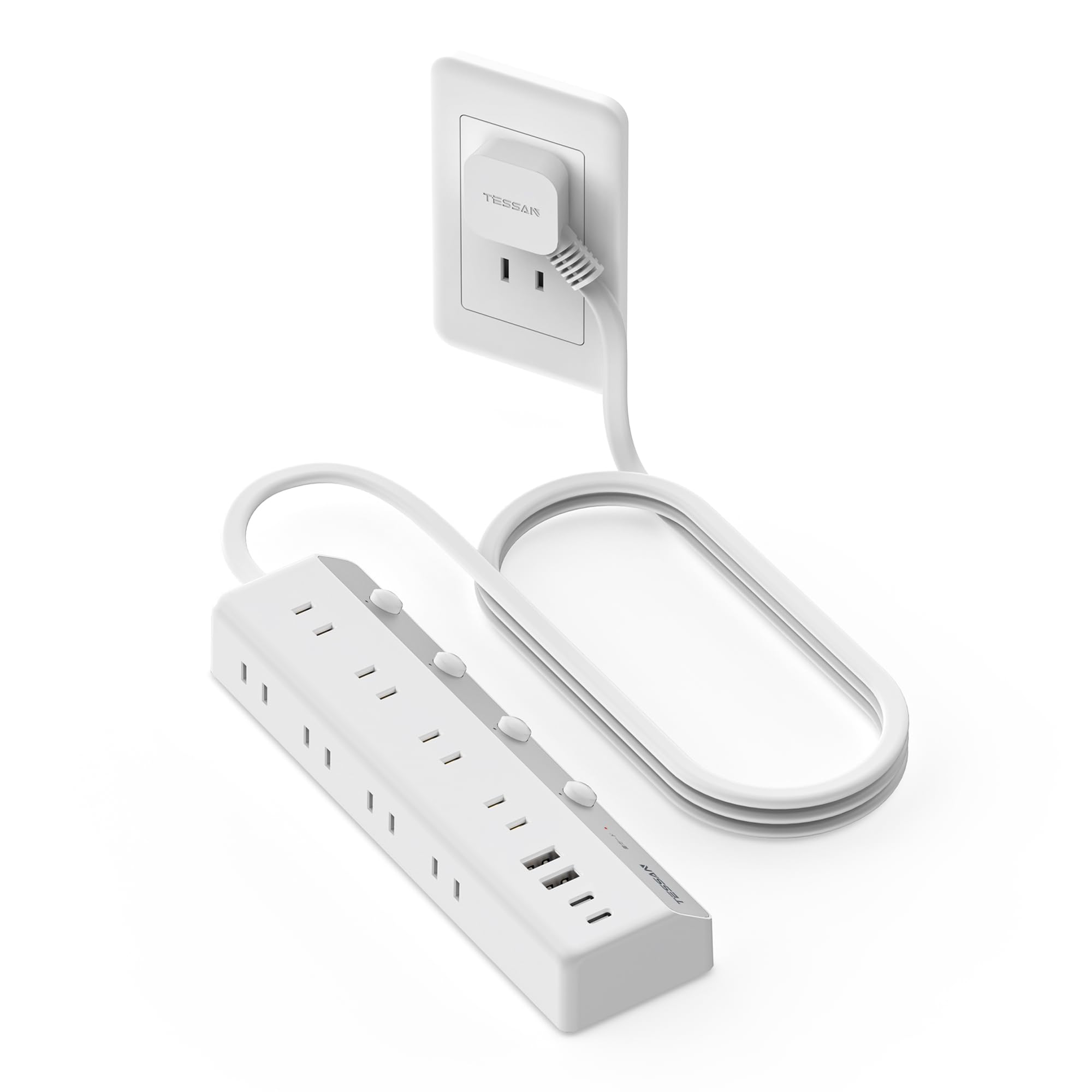 延長コード 2m 電源タップ 薄型プラグ usb たこあしコンセント 個別スイッチ付き テーブルタップ TESSAN 8個AC口 2個type-Aポート 2個type-Cポート 雷ガード 壁掛け マルチ oa たこ足配線 節電 省エネ