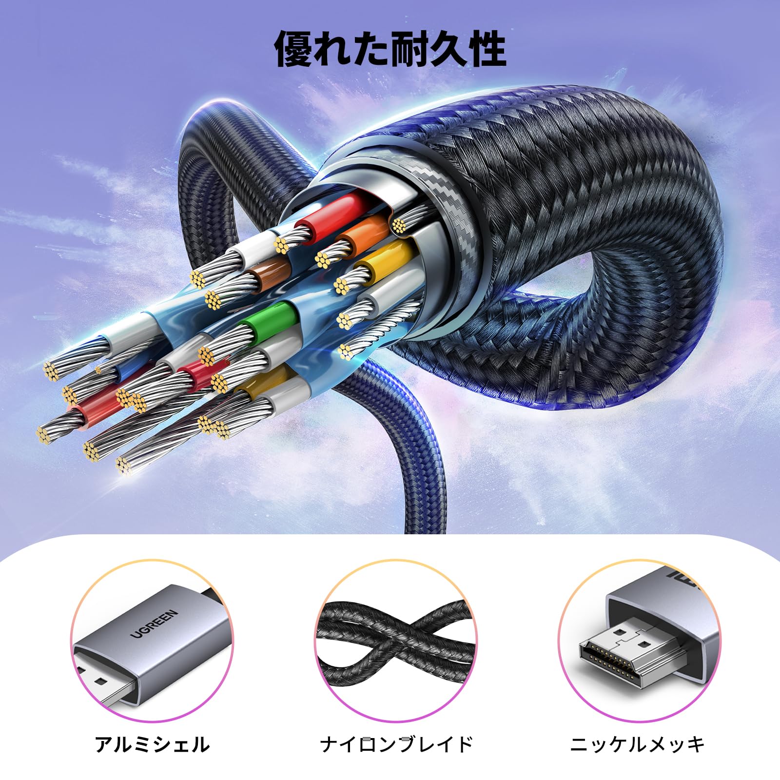 またナイロン素材のケーブルが様々な利用環境を対応でき、簡単かつ便利に使えます。