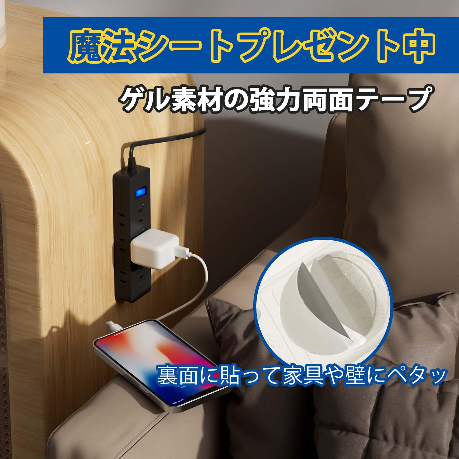 設置方法が選べるから、お好みの場所で使用できる電源タップです。