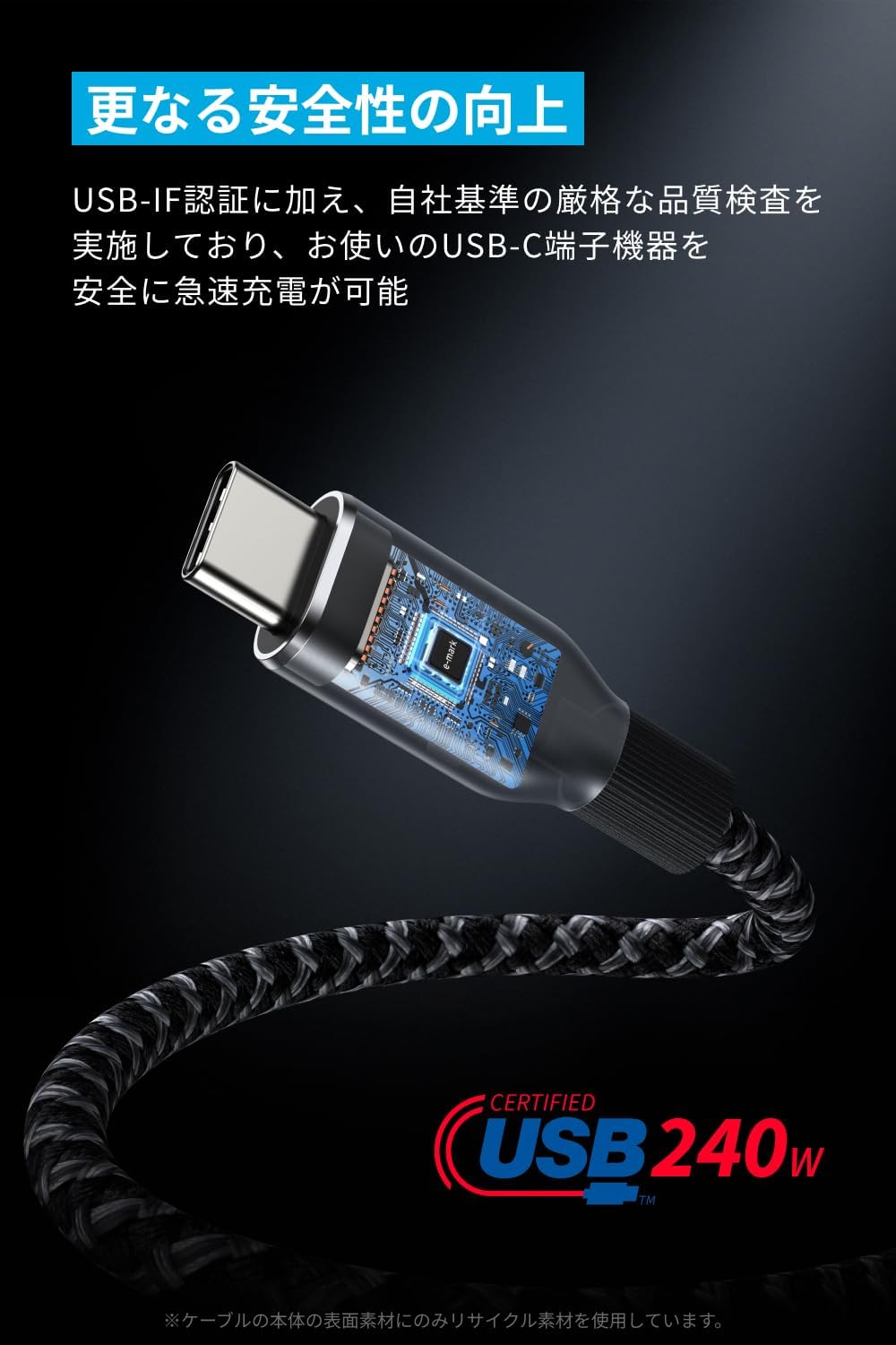 ■ 更なる安全性の向上:USB-IF認証に加え、自社基準の厳格な品質検査を実施しており、お使いのUSB-C端子機器を安全に急速充電が可能です。