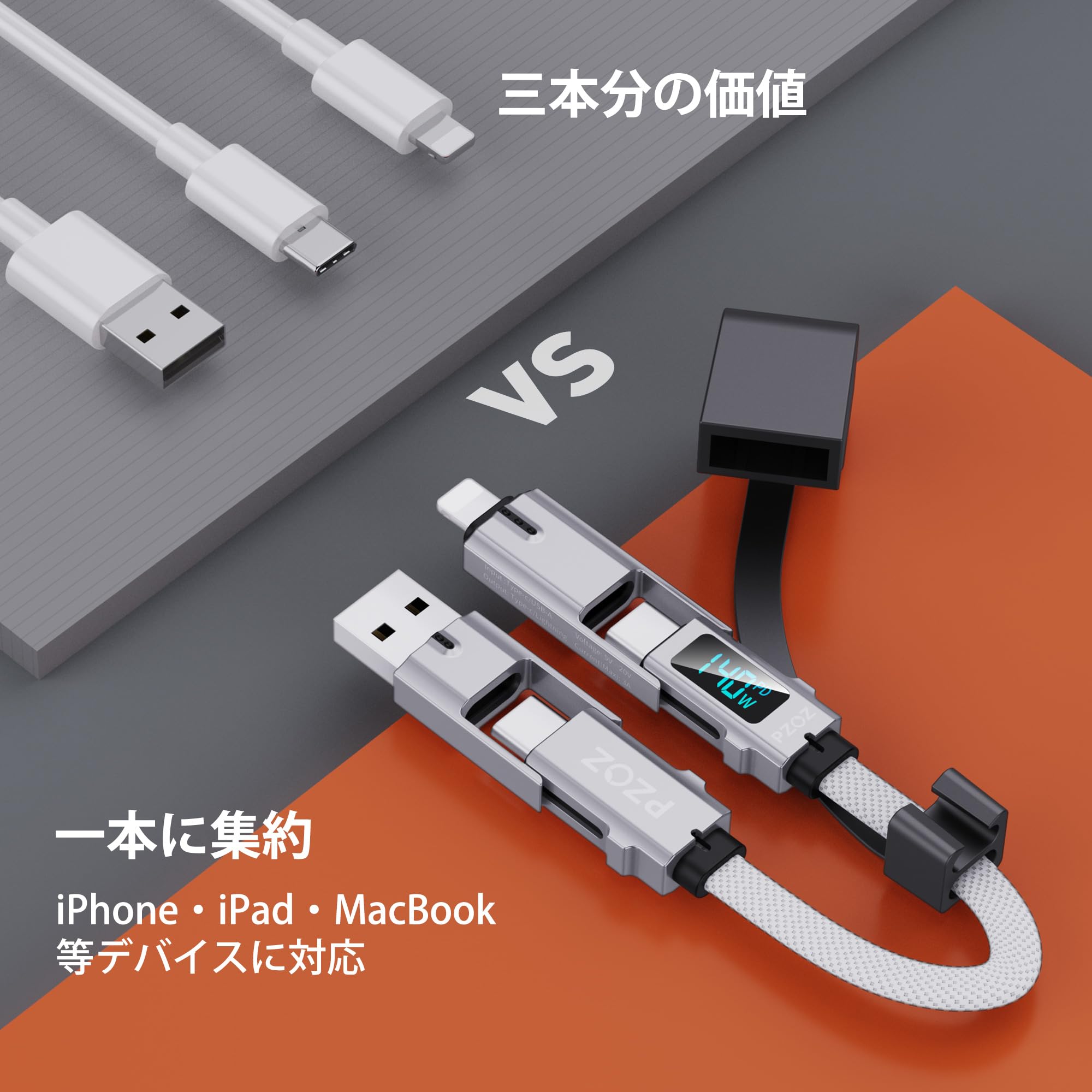 PZOZ マルチ充電ケーブル 4in1 LEDディスプレイ 140W マルチケーブル USB C to A/タイプc to ライトニング/USB A to USB C/USB A to Lightning PD 5A 急速充電 Macbook/iPhone/iPad/Samsung Galaxy/Google Pixel/Switch 対応