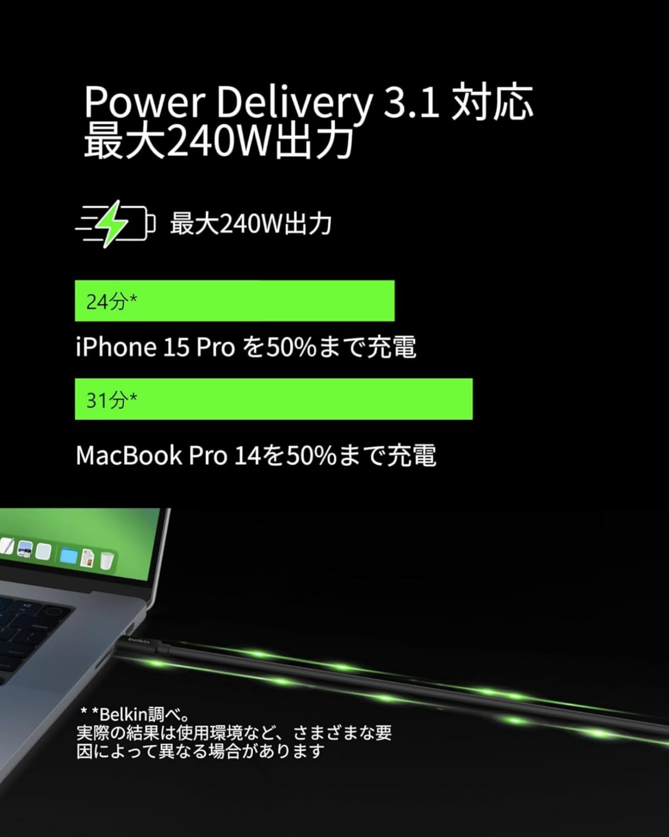 ■ 【最大240W出力対応】MacBookなど一部の高出力PCにも安定して高出力で充電いただけます。