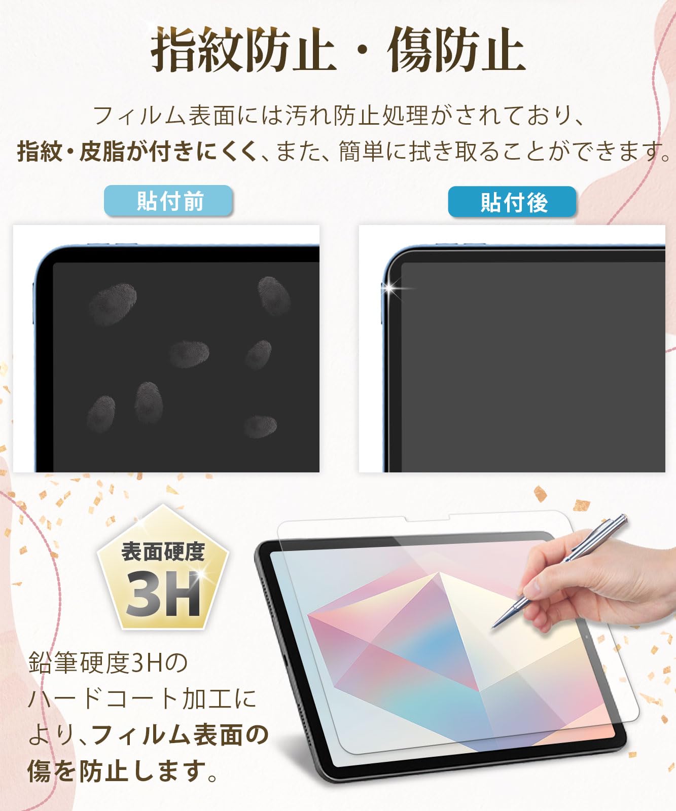 ■ 【貼り付け簡単】自己吸着タイプなので接着剤や両面テープを使わずにアイパッドの液晶画面への貼り付けが可能。
