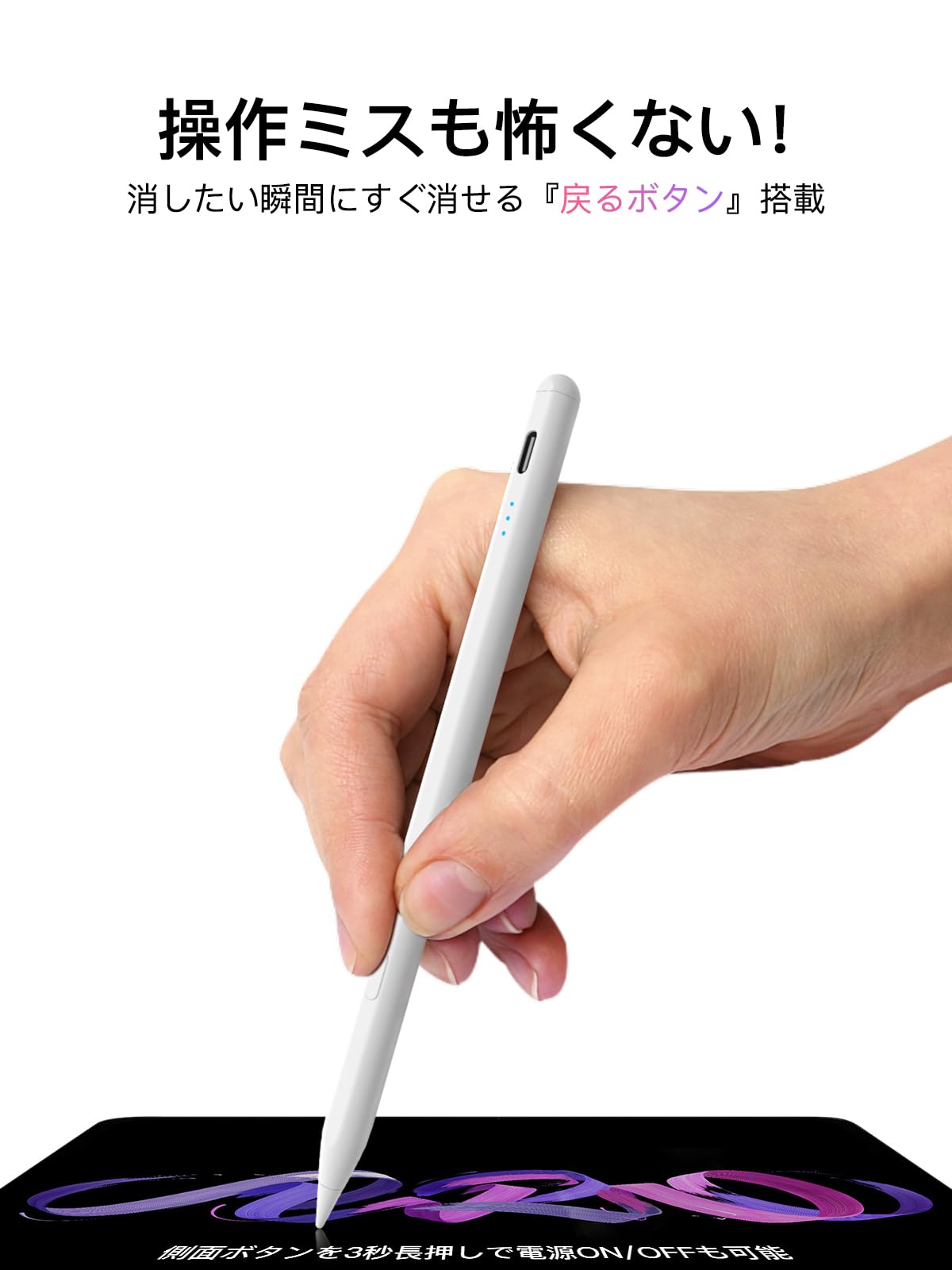 【ワンクリック取り消し】アップルペンシル 2018〜2025年iPad対応 iPad ペンシル Type-C急速充電 高精度タッチペン 傾き感知/パームリジェクション/磁気吸着/誤作動防止 スタイラスペ【Apple Pencil純正互換替えペン先】書き心地滑らか