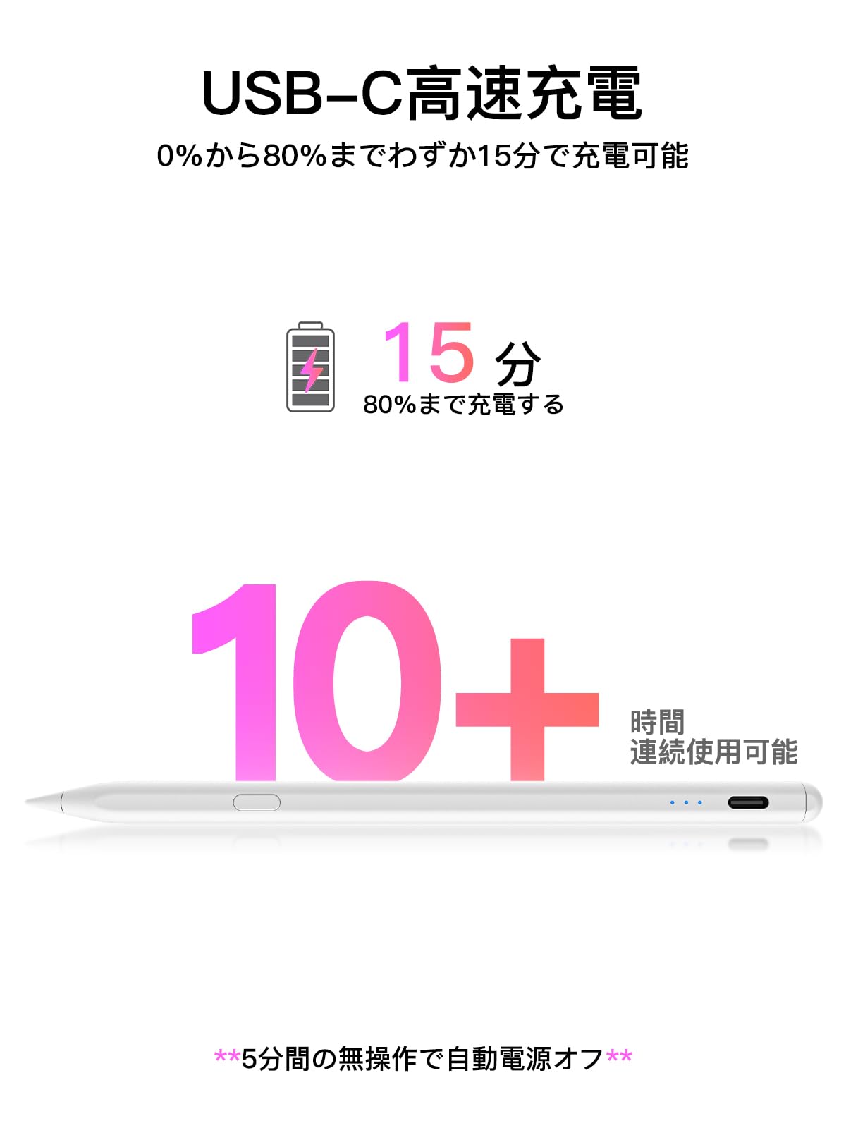 さらに、iPadペンは5分間の非使用後に自動的に電源がオフになり、電力を節約しバッテリー寿命を延ばします。