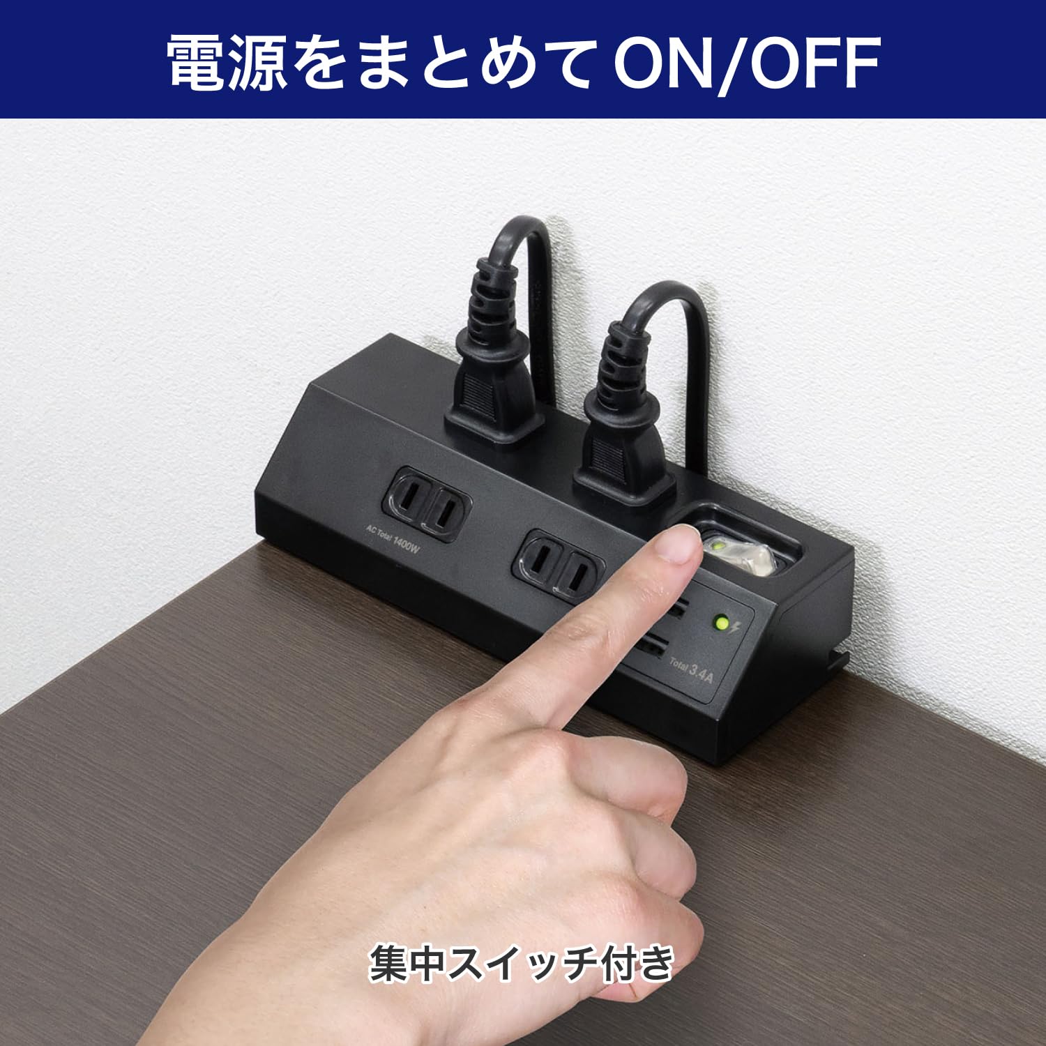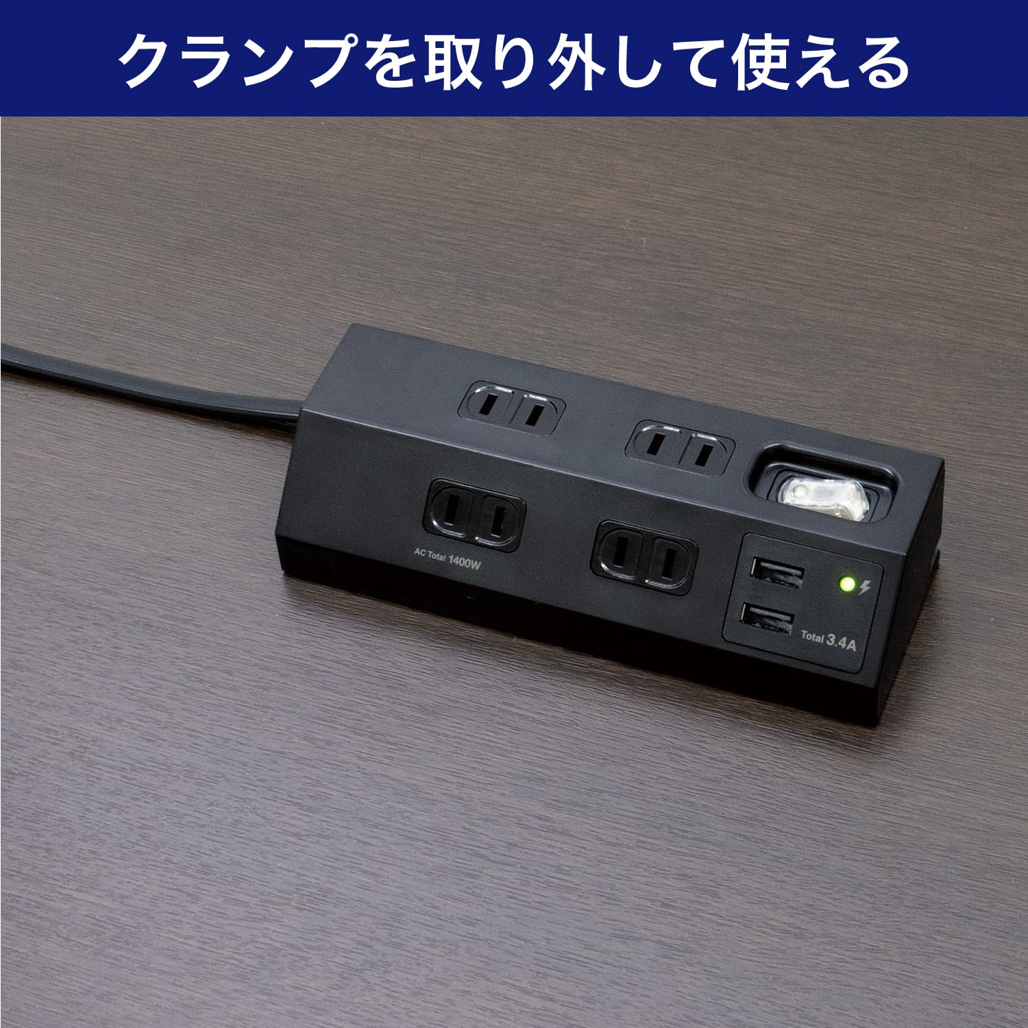 エルパ(ELPA) 卓上電源タップ USB付き クランプ固定 集中スイッチ 雷ガード付き WLS-DS4232SUA(BK)