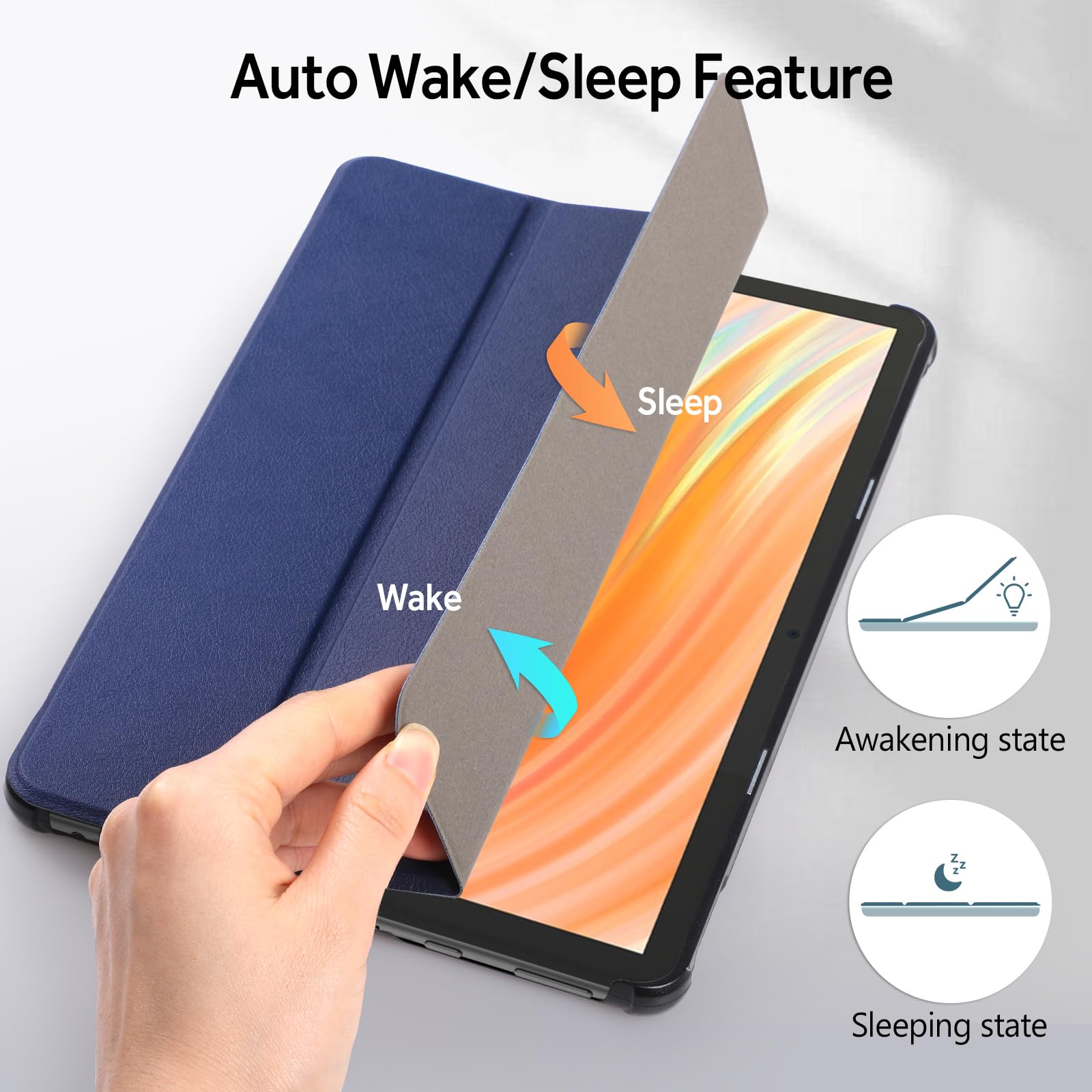 Hianjoo Fire HD 10 2023 対応 ケース 10インチ タブレットケース Fire HD 10 第13世代 対応 カバー スタンド機能付き オートスリープ機能 全面保護ケース 耐衝撃 擦り傷防止 - ダークブルー