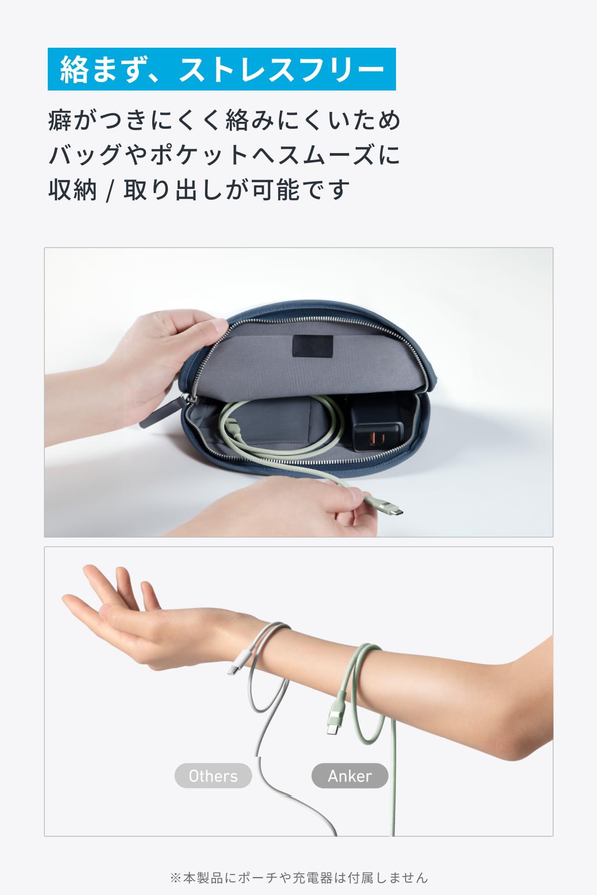■ パッケージ内容:Anker USB-C & USB-C ケーブル (1.8m, 240W, 高耐久ナイロン)、シリコン製結束バンド、カスタマーサポート