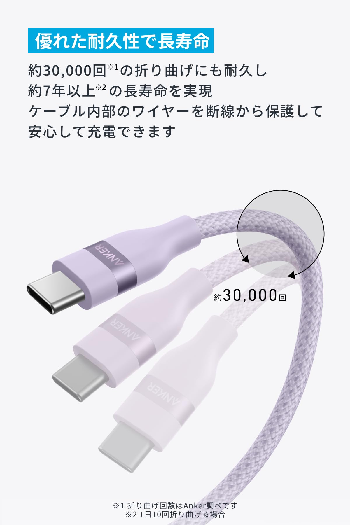 ケーブル内部のワイヤーを断線から保護し、安心して充電できます (折り曲げ回数はAnker調べ。