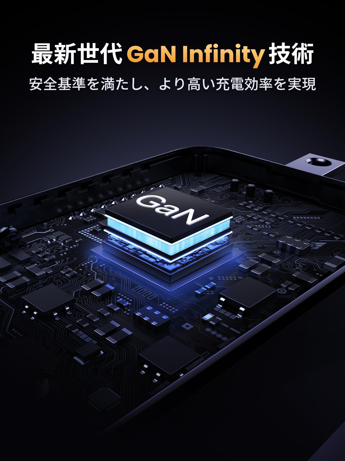 ■ 【進化されたGaN技術Infinity世代!】進化されたInfinity世代GaN技術を搭載し、一般的なタイプC充電器65Wに比べ約30%小さなコンパクトサイズを実現した上に普通のGaN技術より余分な熱を発生させずに動作中の温度を低くしてより強い出力パワーを提供し高効率充電を可能にする。