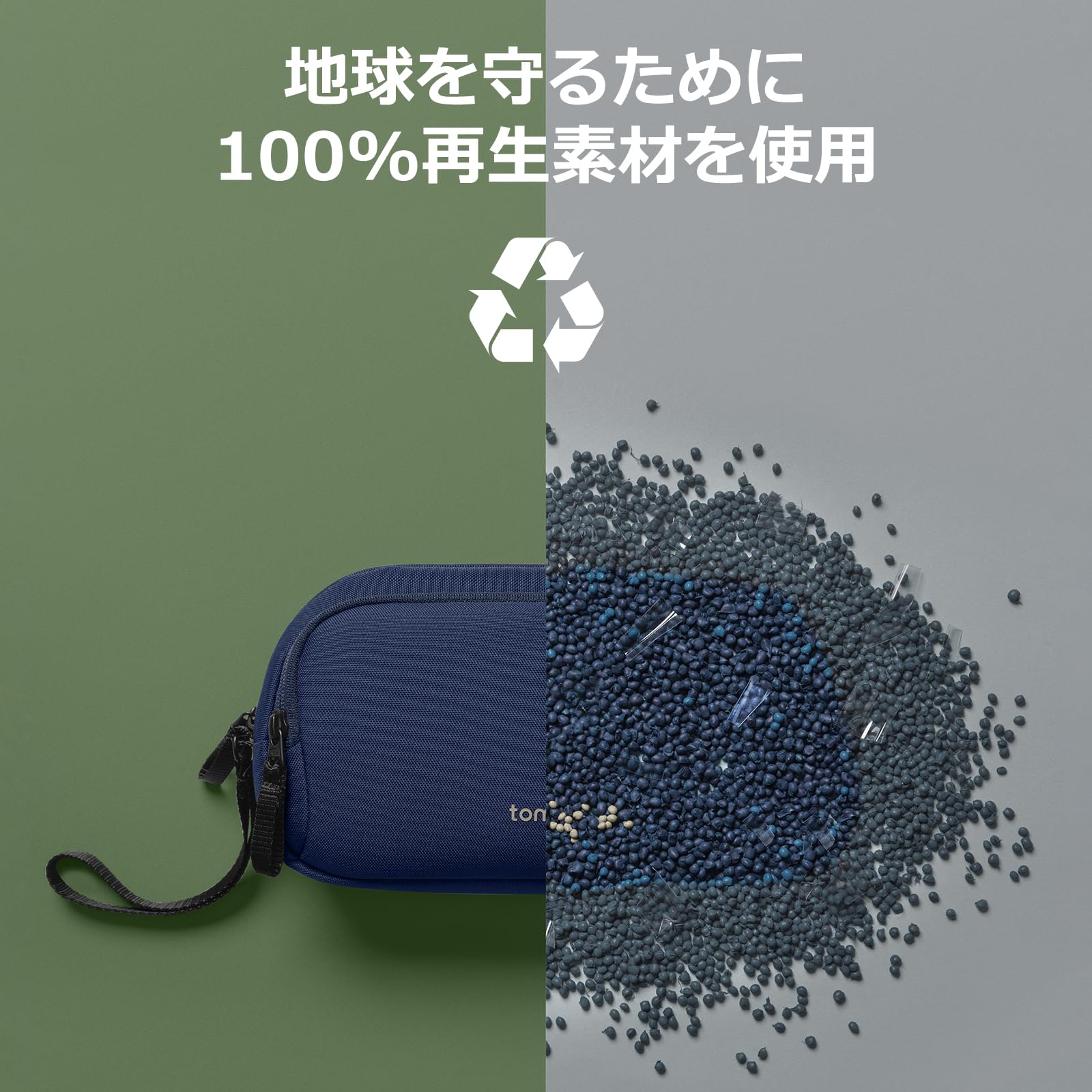 tomtoc ガジェットポーチ 大容量 トラベルポーチ PC周辺小物収納ポーチ 小物入れ バッグ ケース ケーブル アダプタ モバイルバッテリー マウス収納 出張 お出掛け オフィス 旅行 便利グッズ バックインバッグ 二層 自立 撥水 軽量 ネイビー